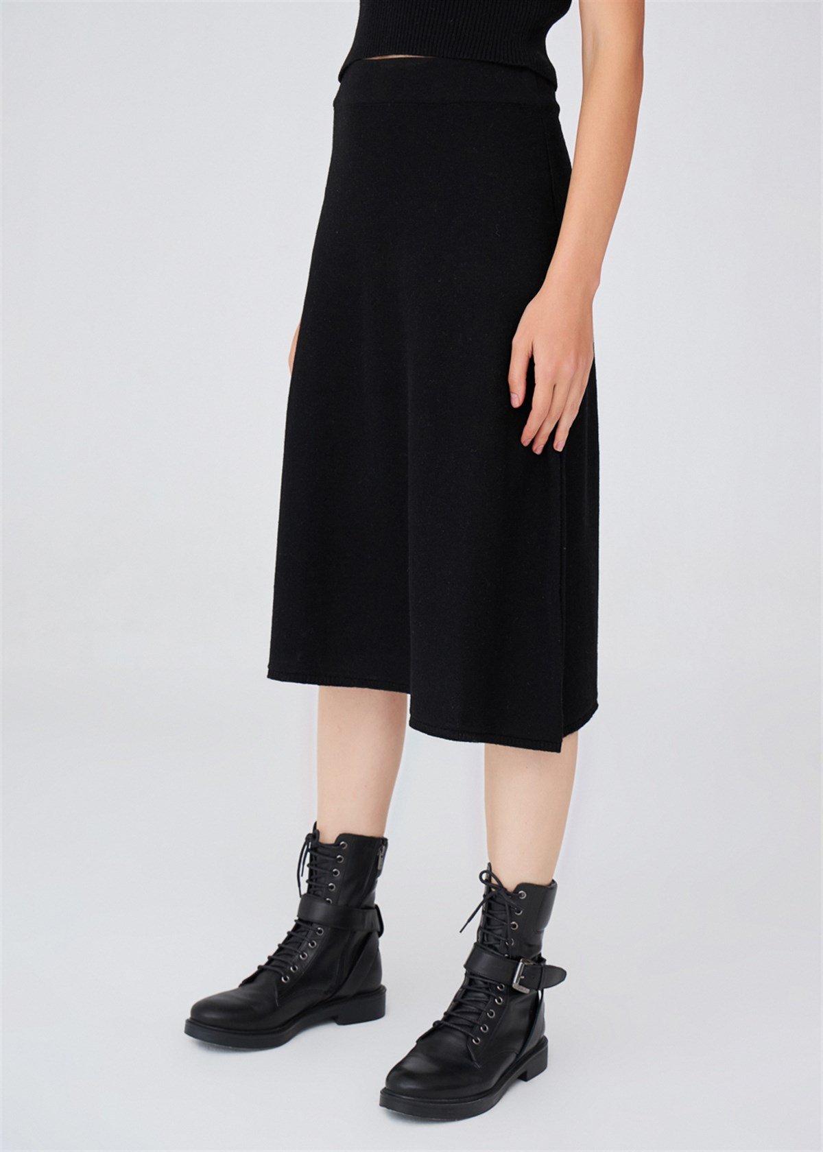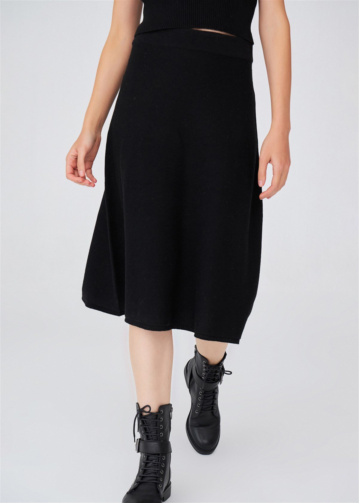 Peraluna Below Knee Cashmere Blend Knitwear A-Line Flare Skirt - Black (12312008)