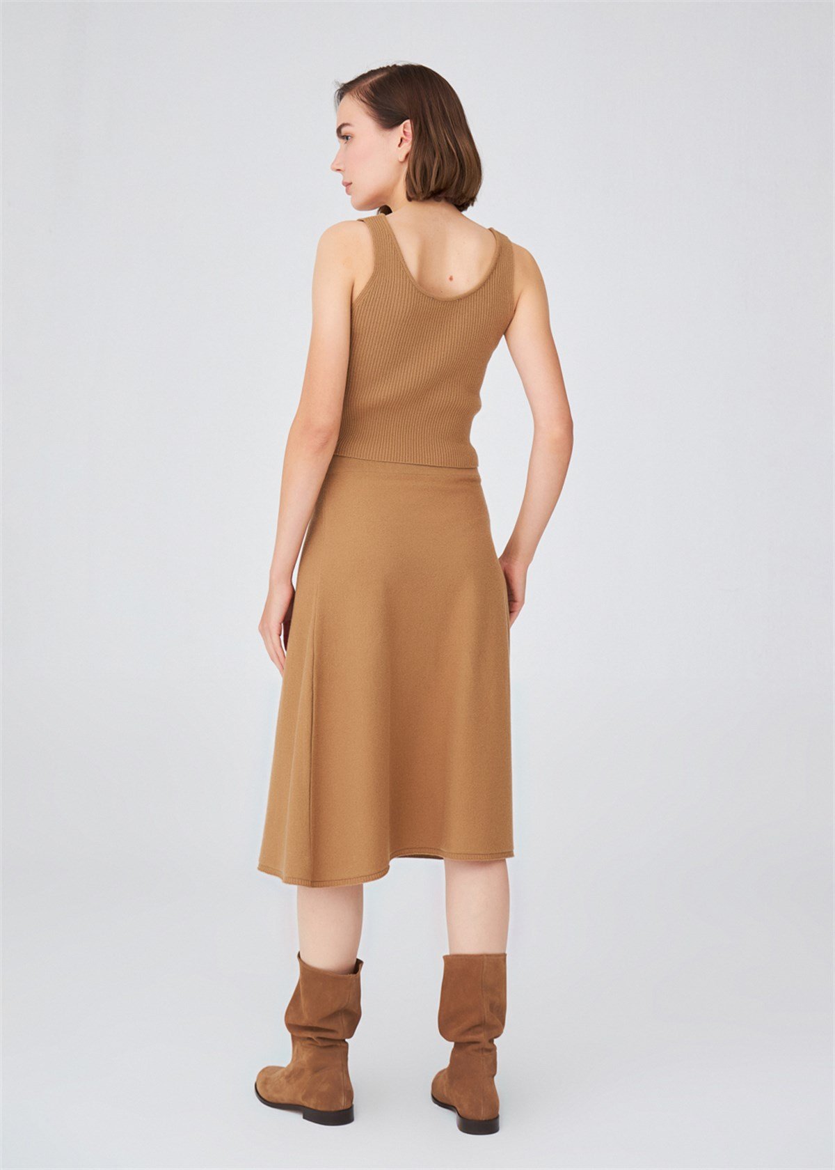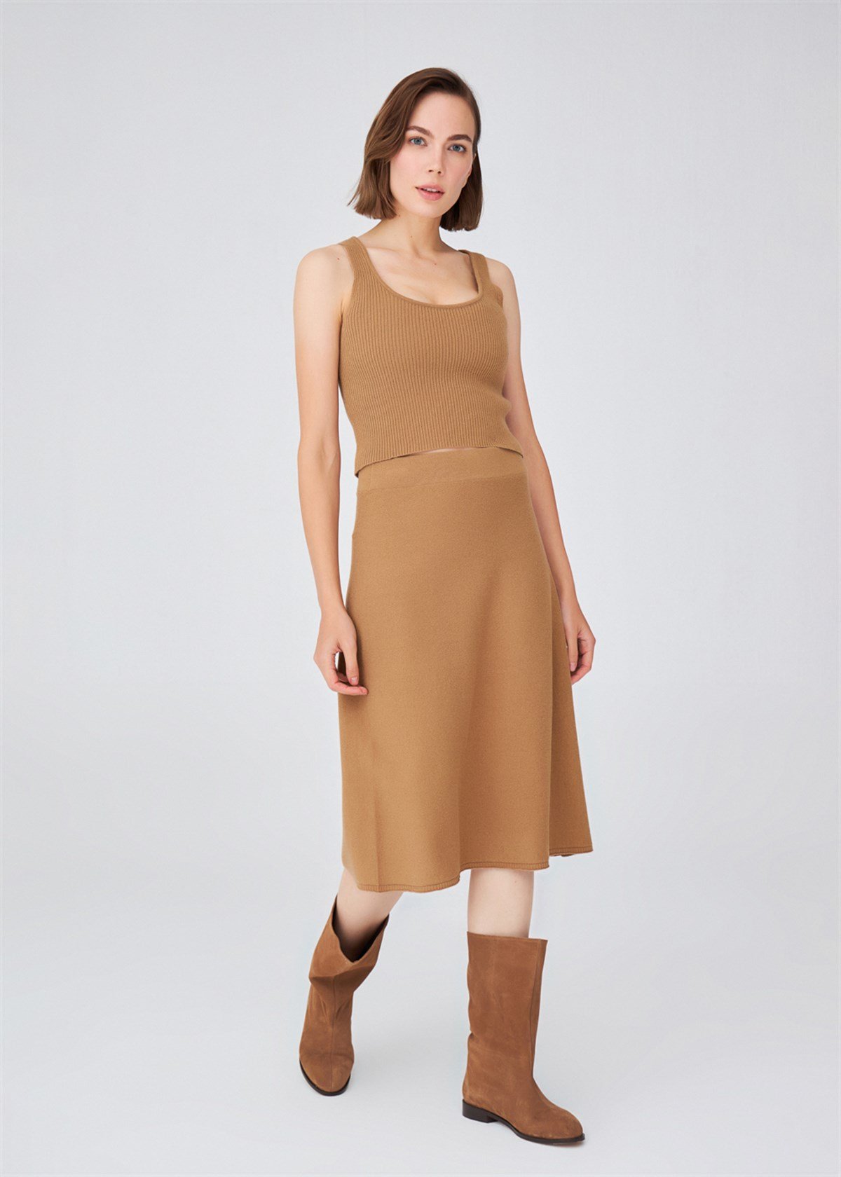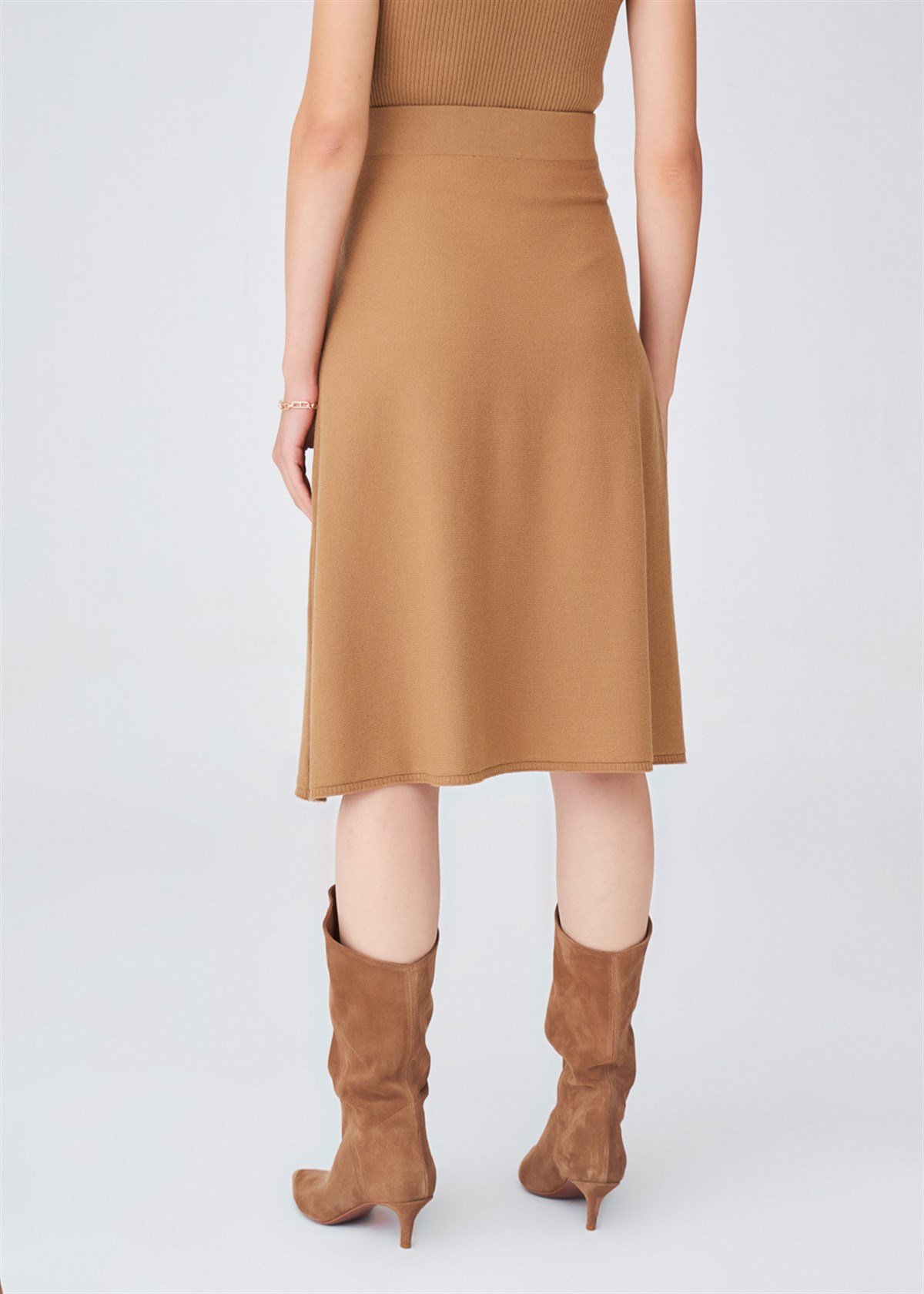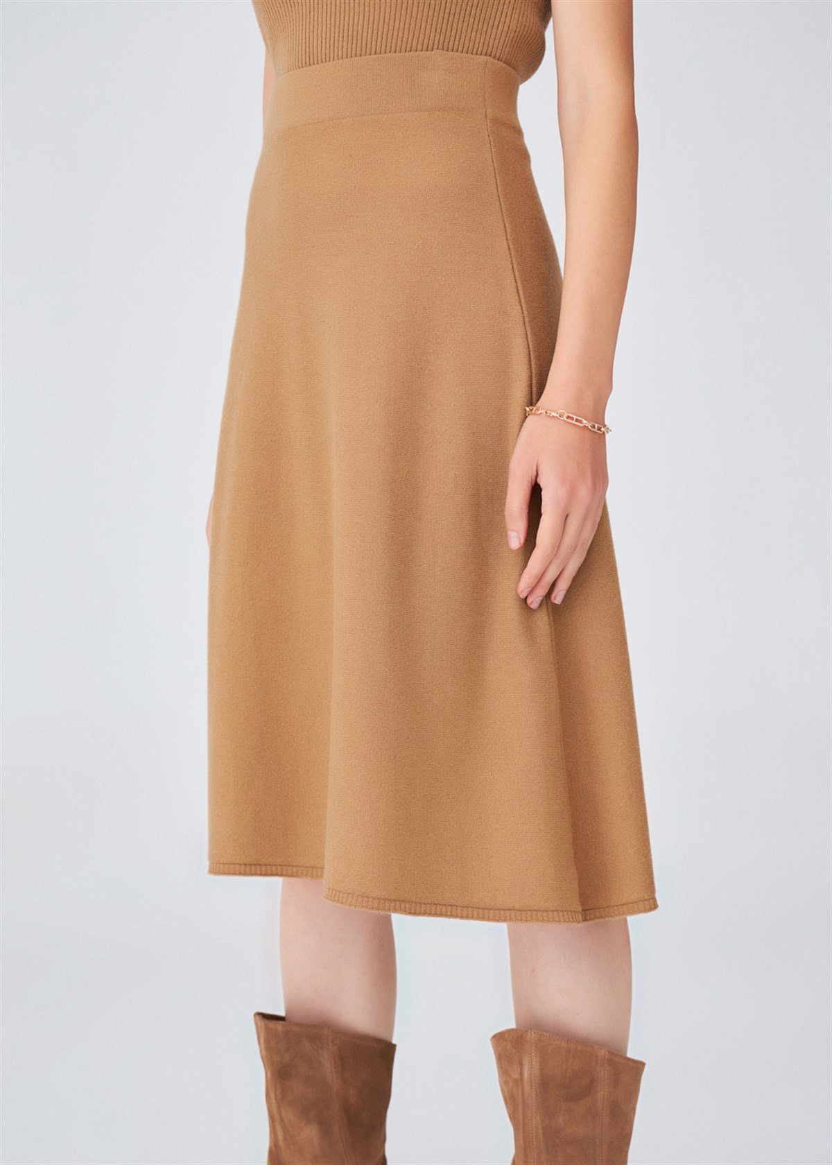 The product on the model is size S/36 Flat knit, elasticated at the waist, comfortable skirt below the knee Comfortable Fit