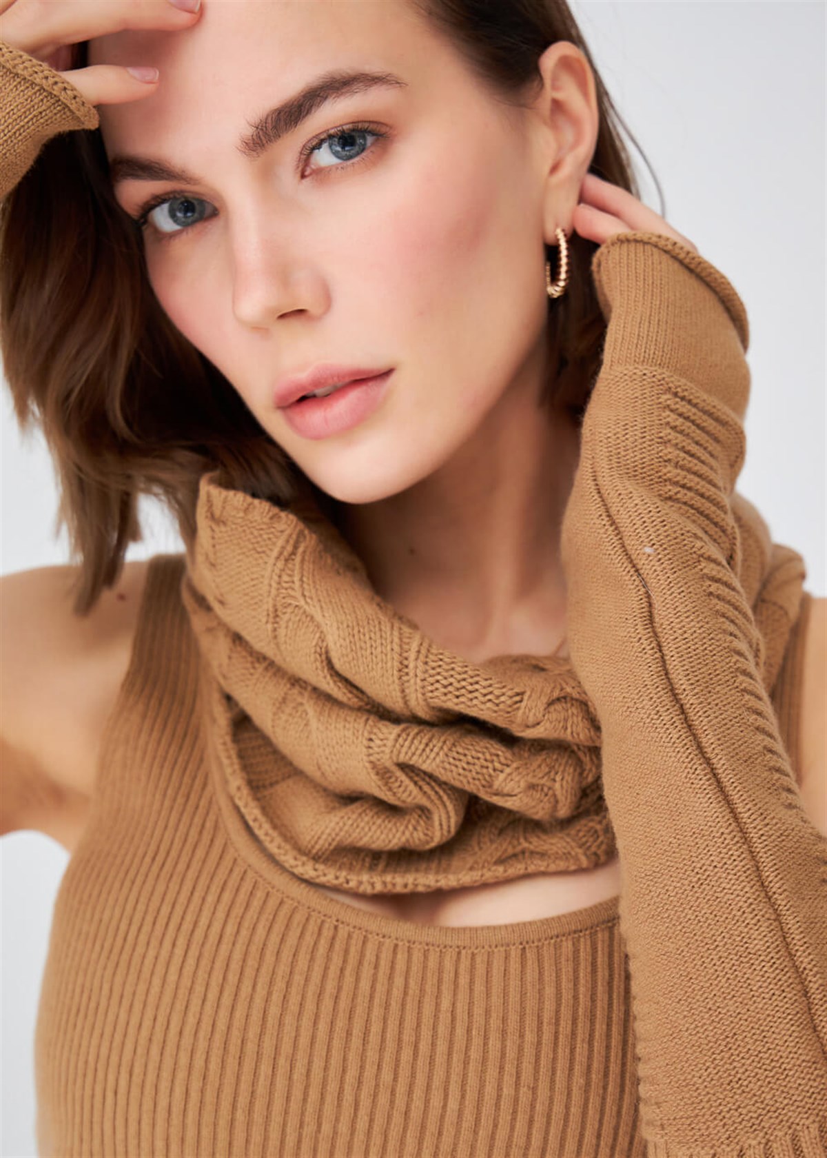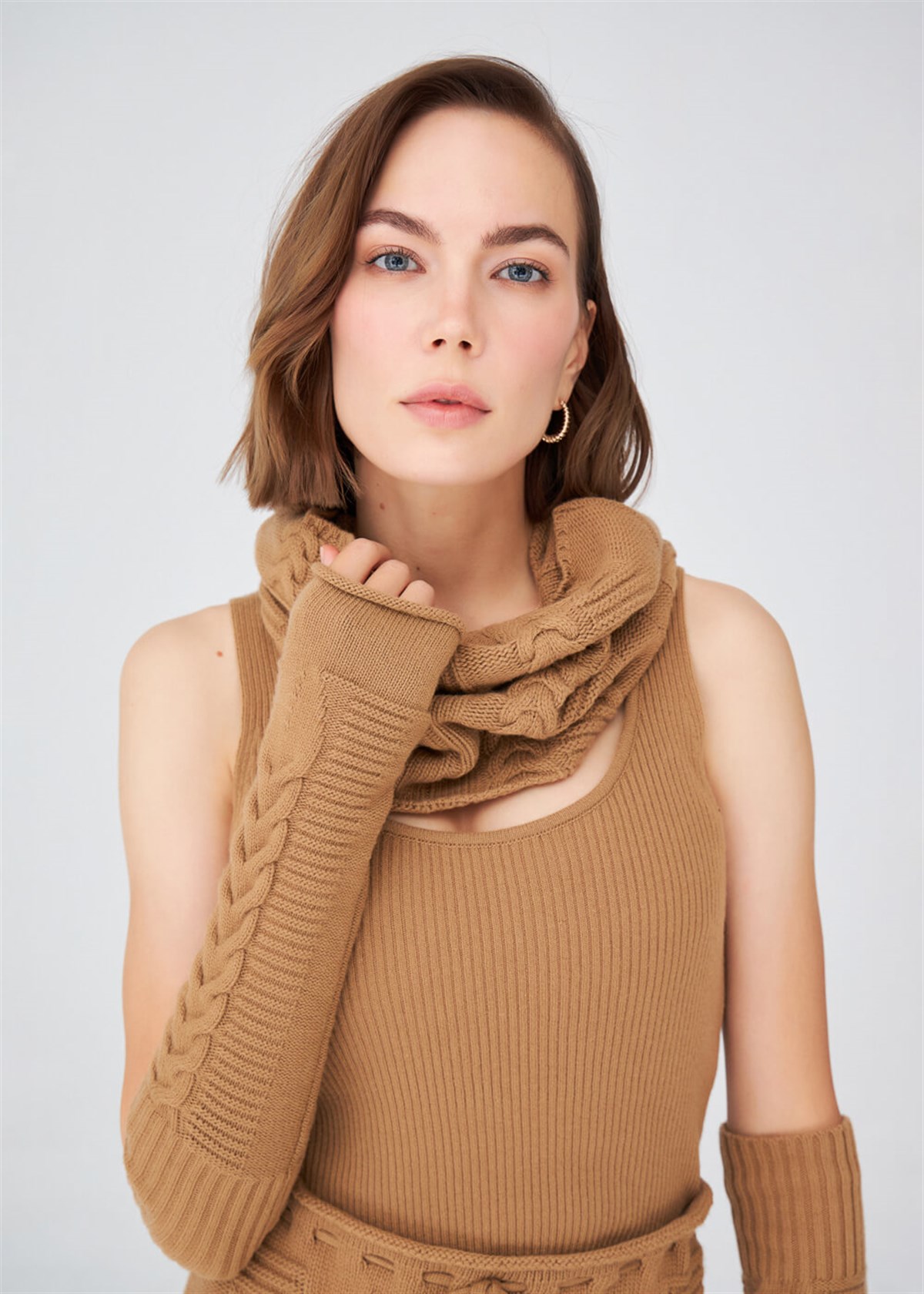 Peraluna Cable Knit Cashmere Blend Women Knitwear Collar - Camel (12330001)
