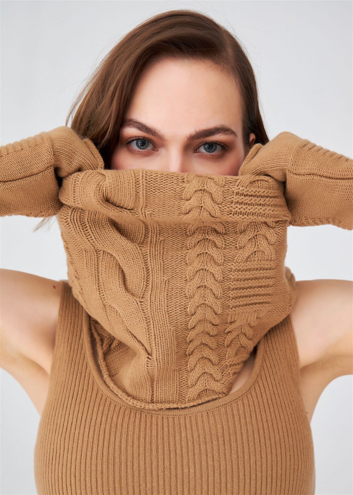 Peraluna Cable Knit Cashmere Blend Women Knitwear Collar - Camel