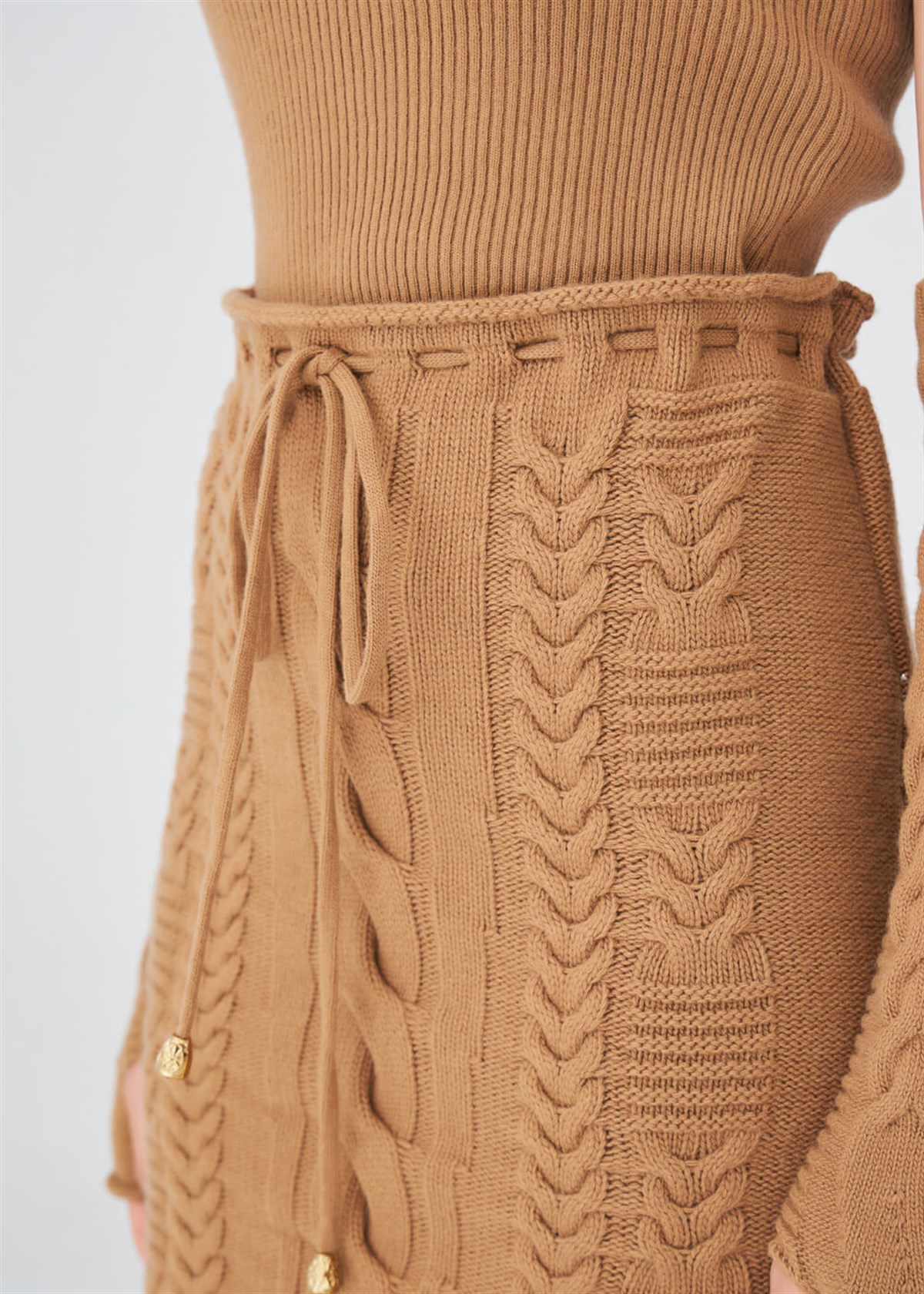 Peraluna Cable Knit Rope Mini Skirt - Camel (12312009)