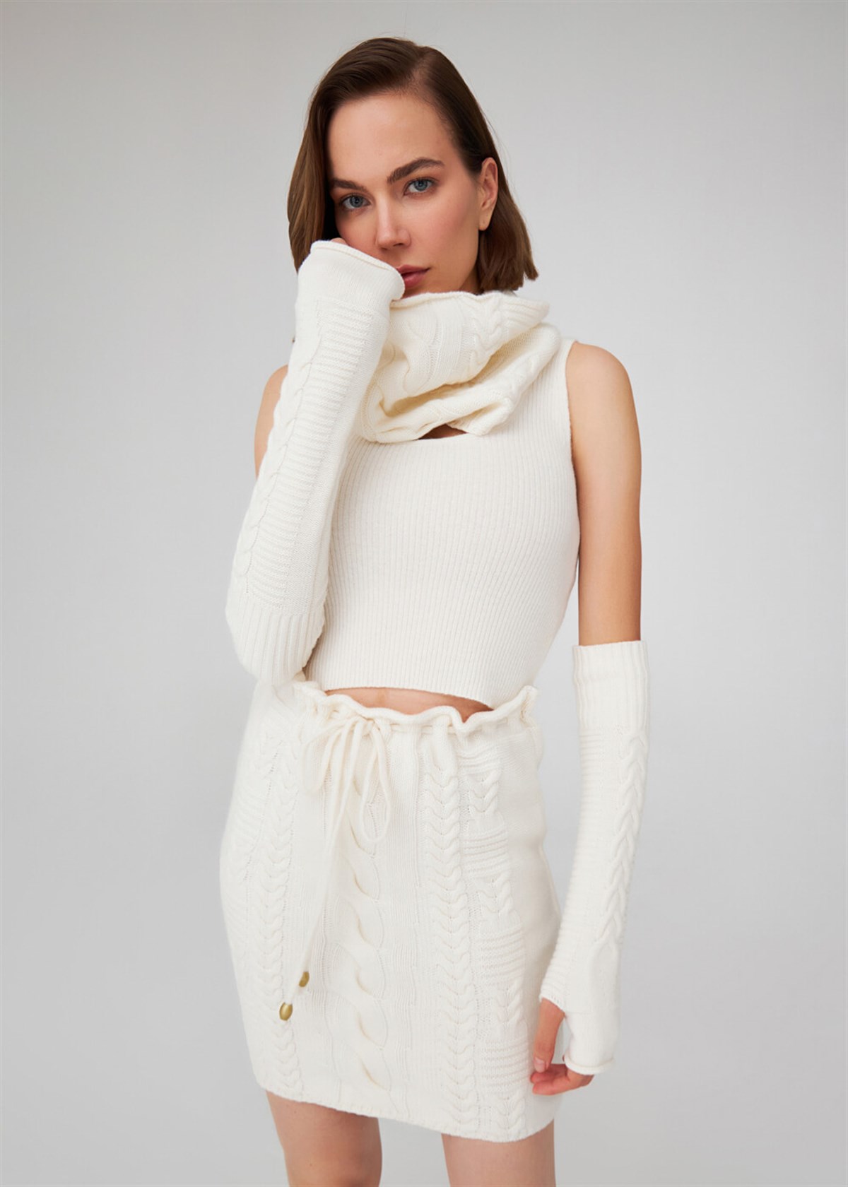 Peraluna Cable Knit Rope Mini Skirt - Ecru (12312009)