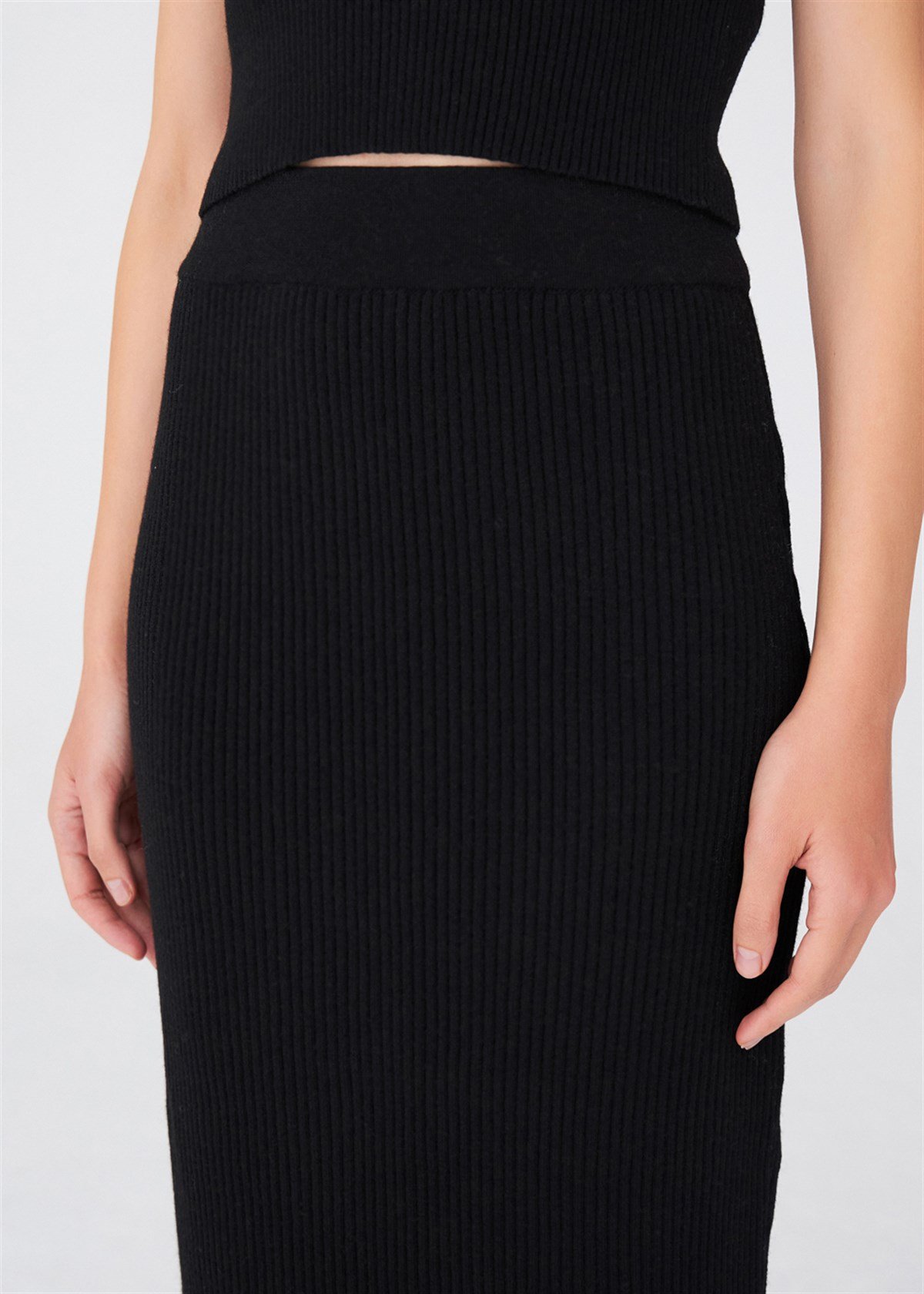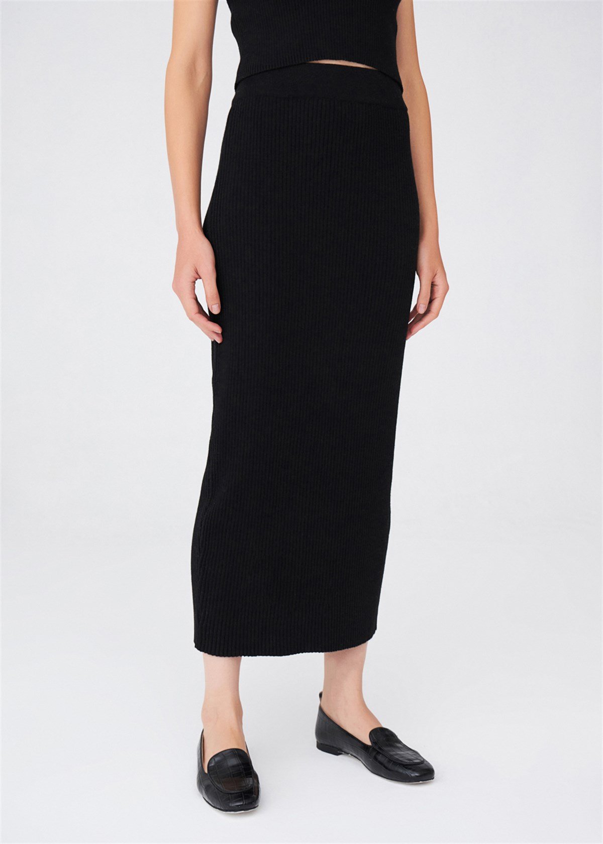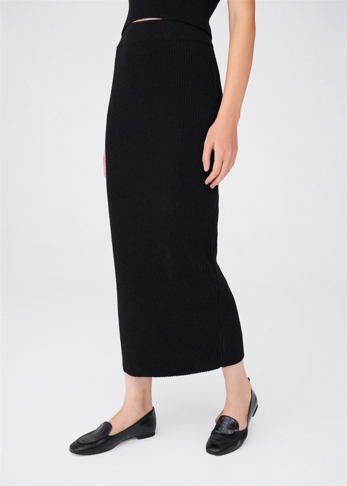 The product on the model is size S/36 Ribana Braid, Elasticized at the Waist, High Waist, 90 cm Midi Long Skirt Comfort Fit Pencil Skirt