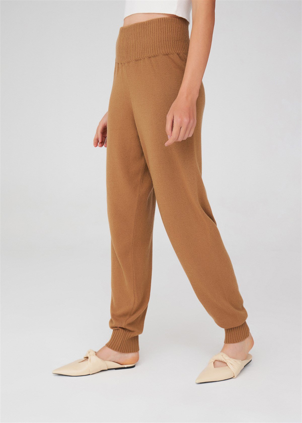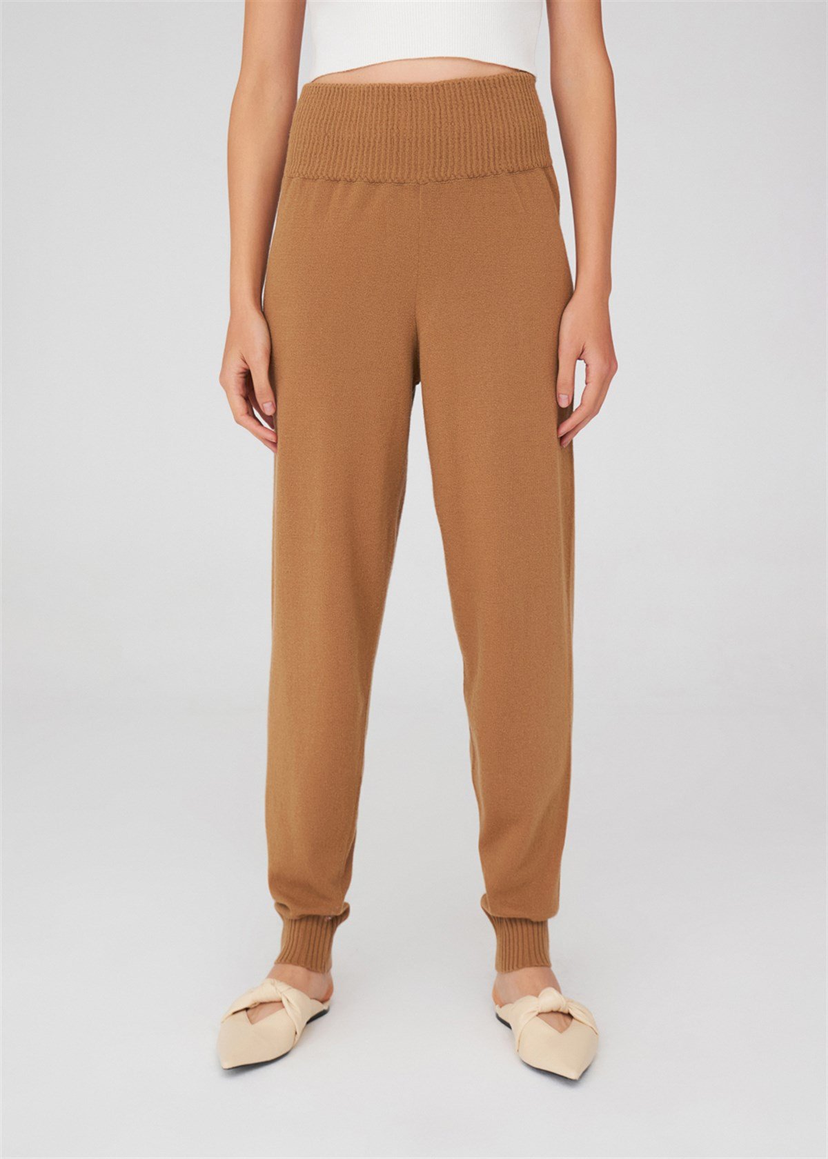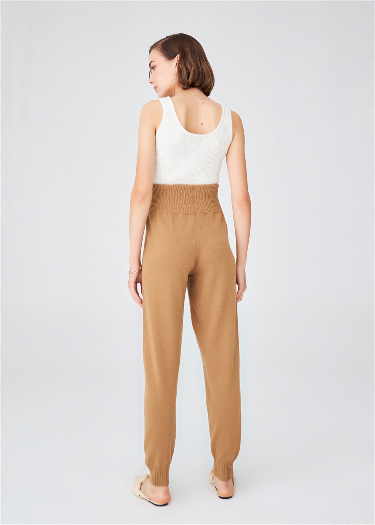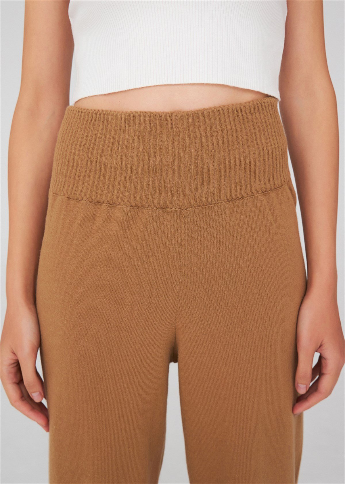 The product on the model is size S/36 Straight knit, high waist with ribber, comfortable trousers with ribbed detailing on the ankle, laced at the waist Comfort Fit