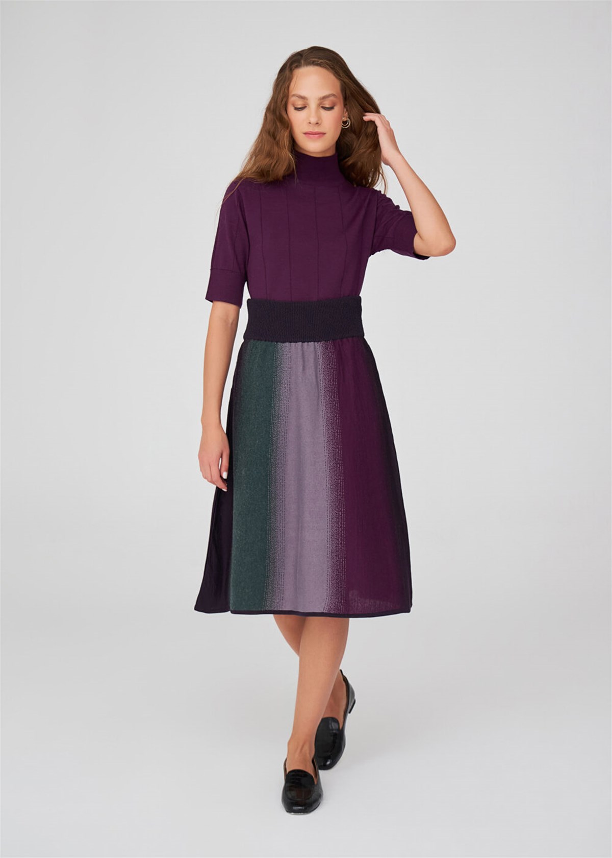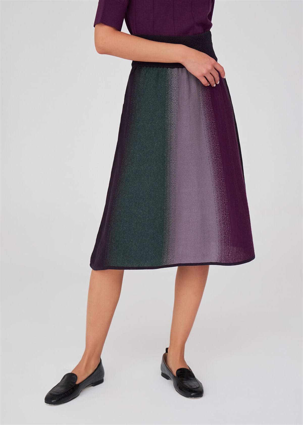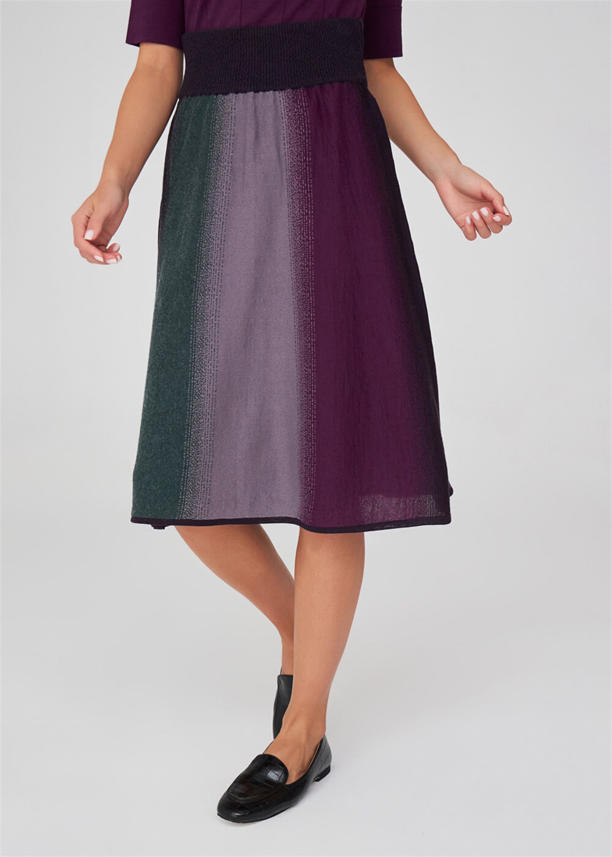 Straight Braid, Color Transition, Elasticated High Waist, Below the Knee Skirt