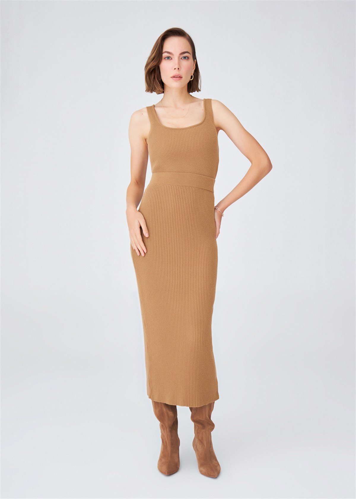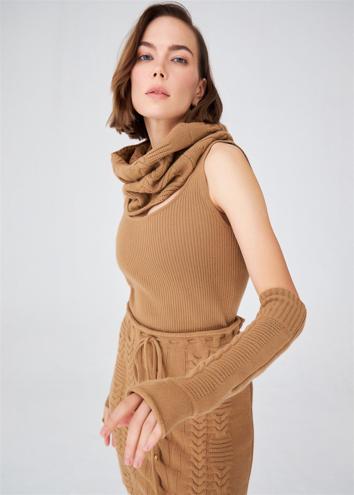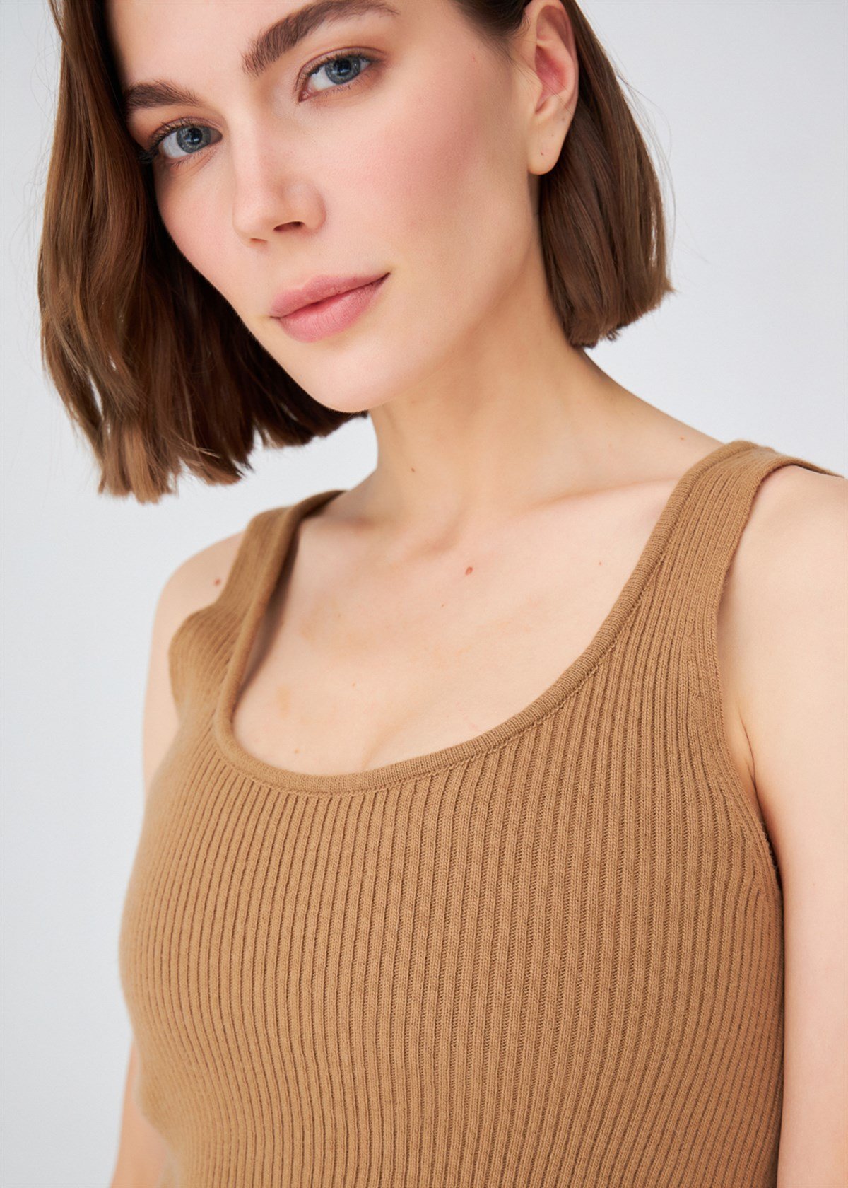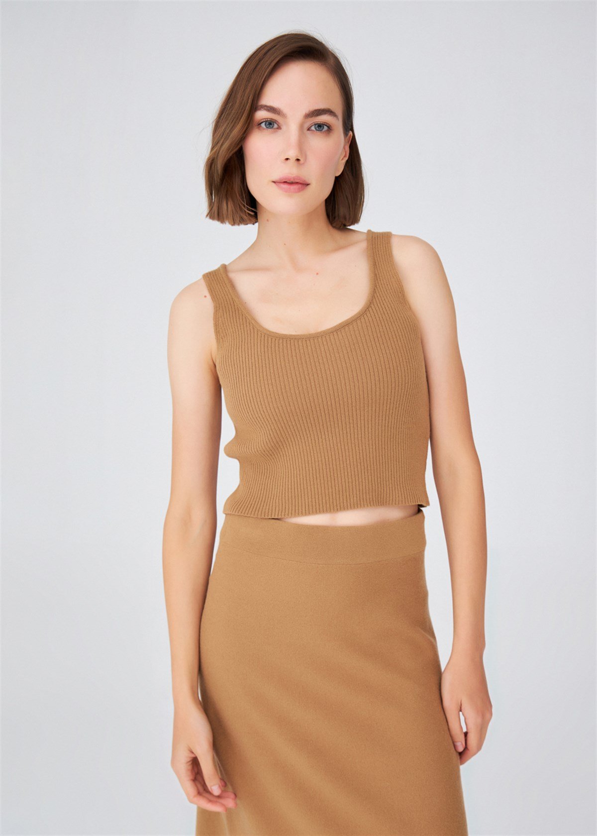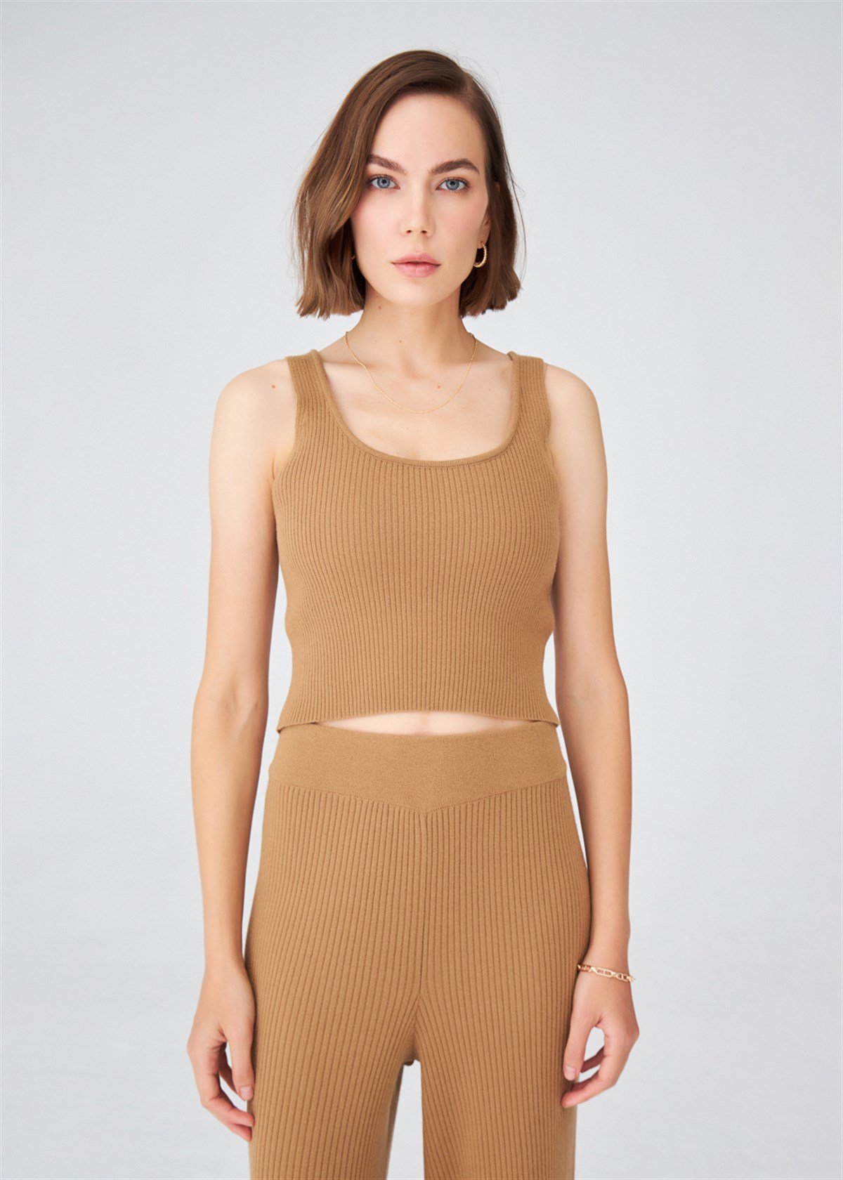 Peraluna Ribbed Knitwear Women's Crop Undershirt - Camel (12310001)