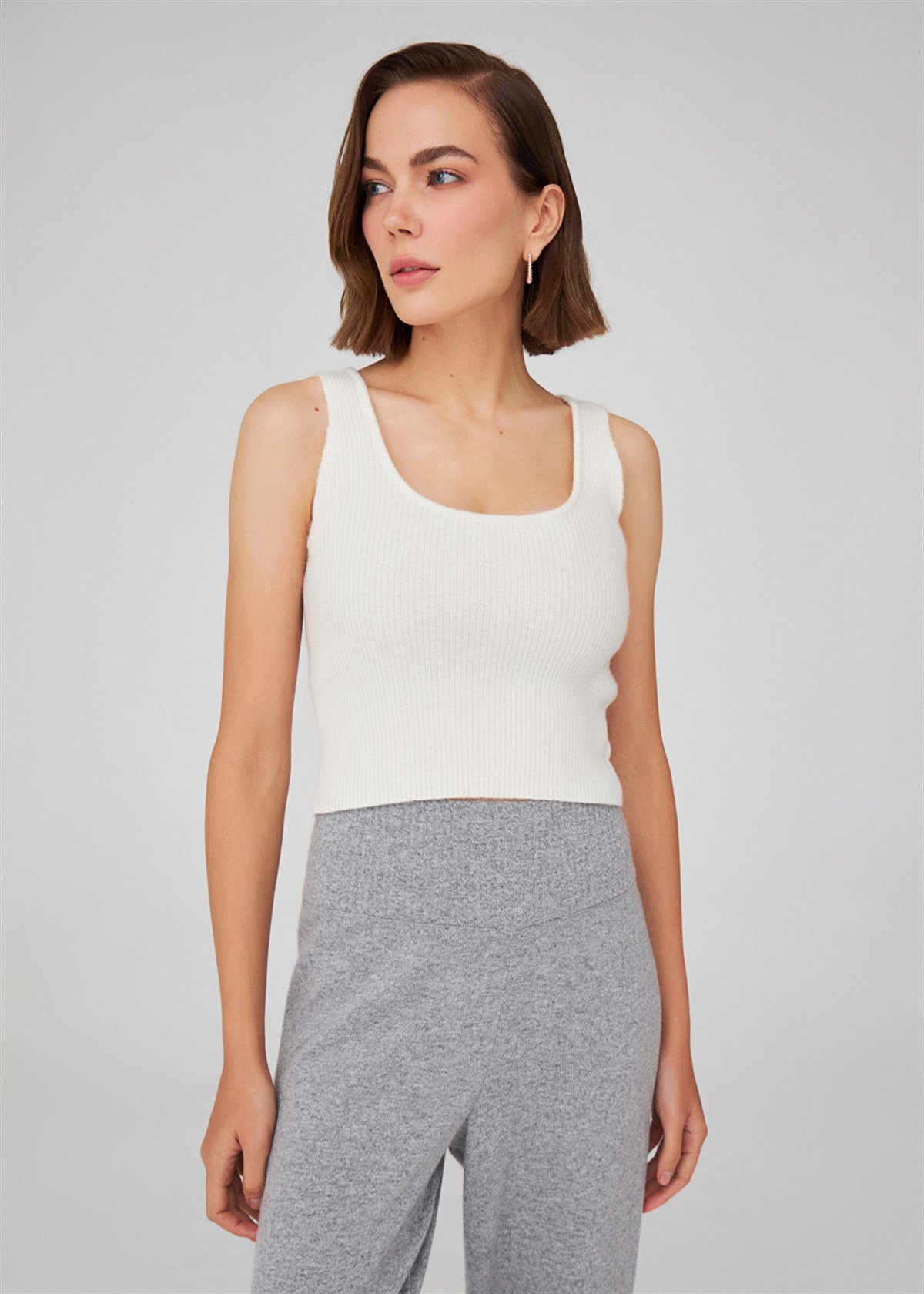 Peraluna Ribbed Knitwear Women's Crop Undershirt - Ecru (12310001)