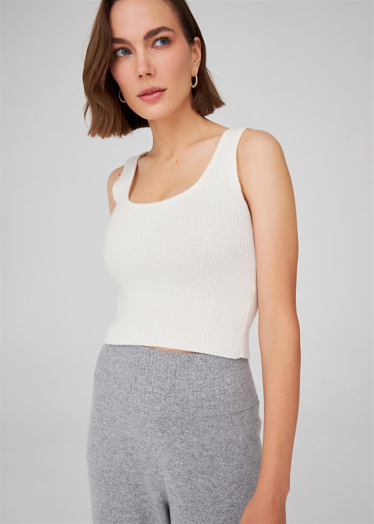 Peraluna Ribbed Knitwear Women's Crop Undershirt - Ecru