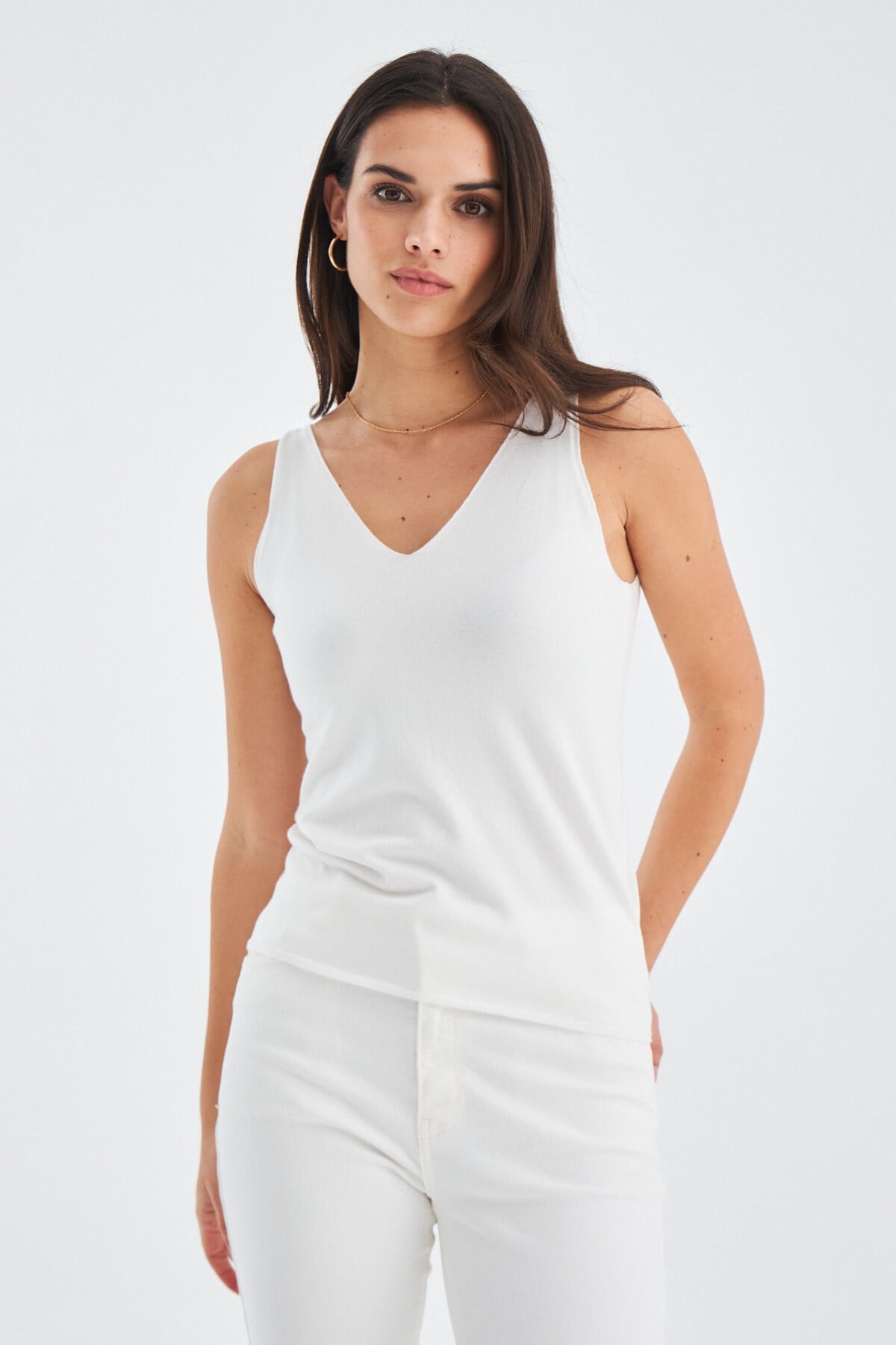 Peraluna RUBY TOP V-NECK Summer Women's Knitwear Undershirt - Ekru
