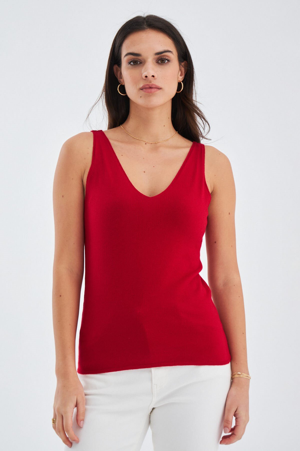 Peraluna RUBY TOP V-NECK Summer Women's Knitwear Undershirt - Red
