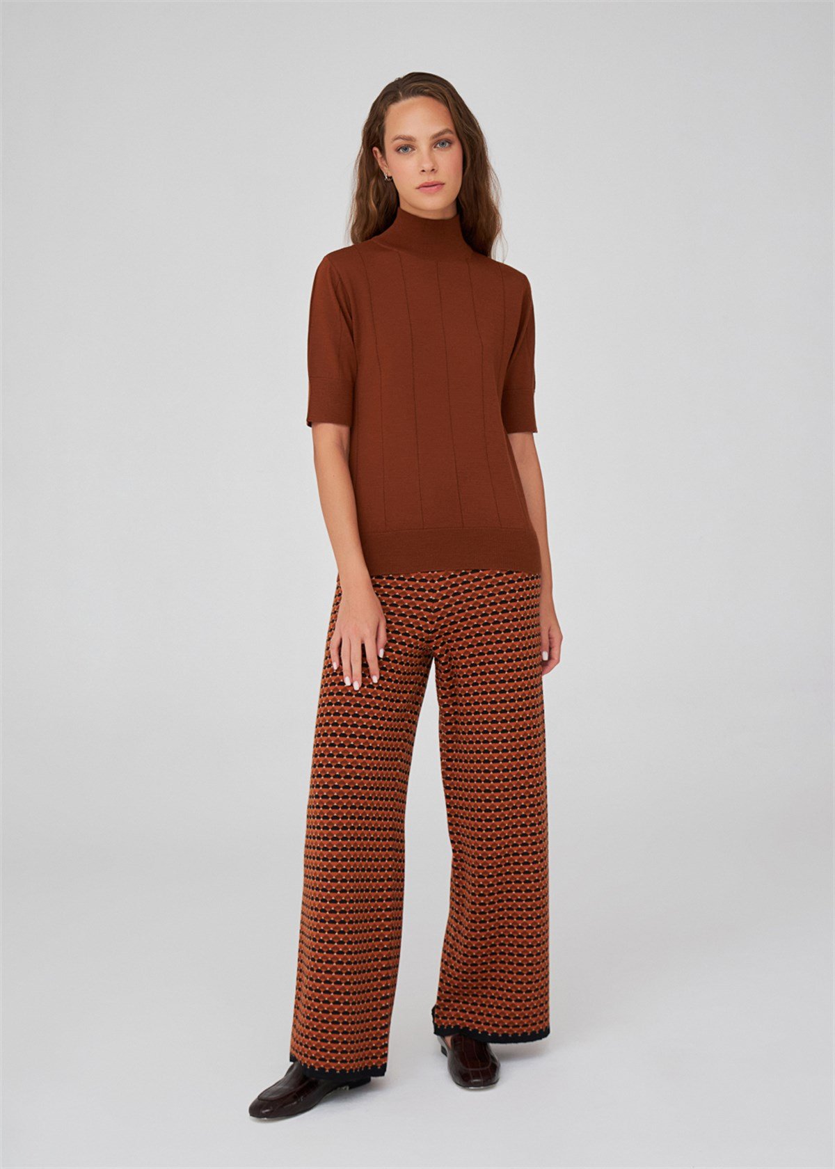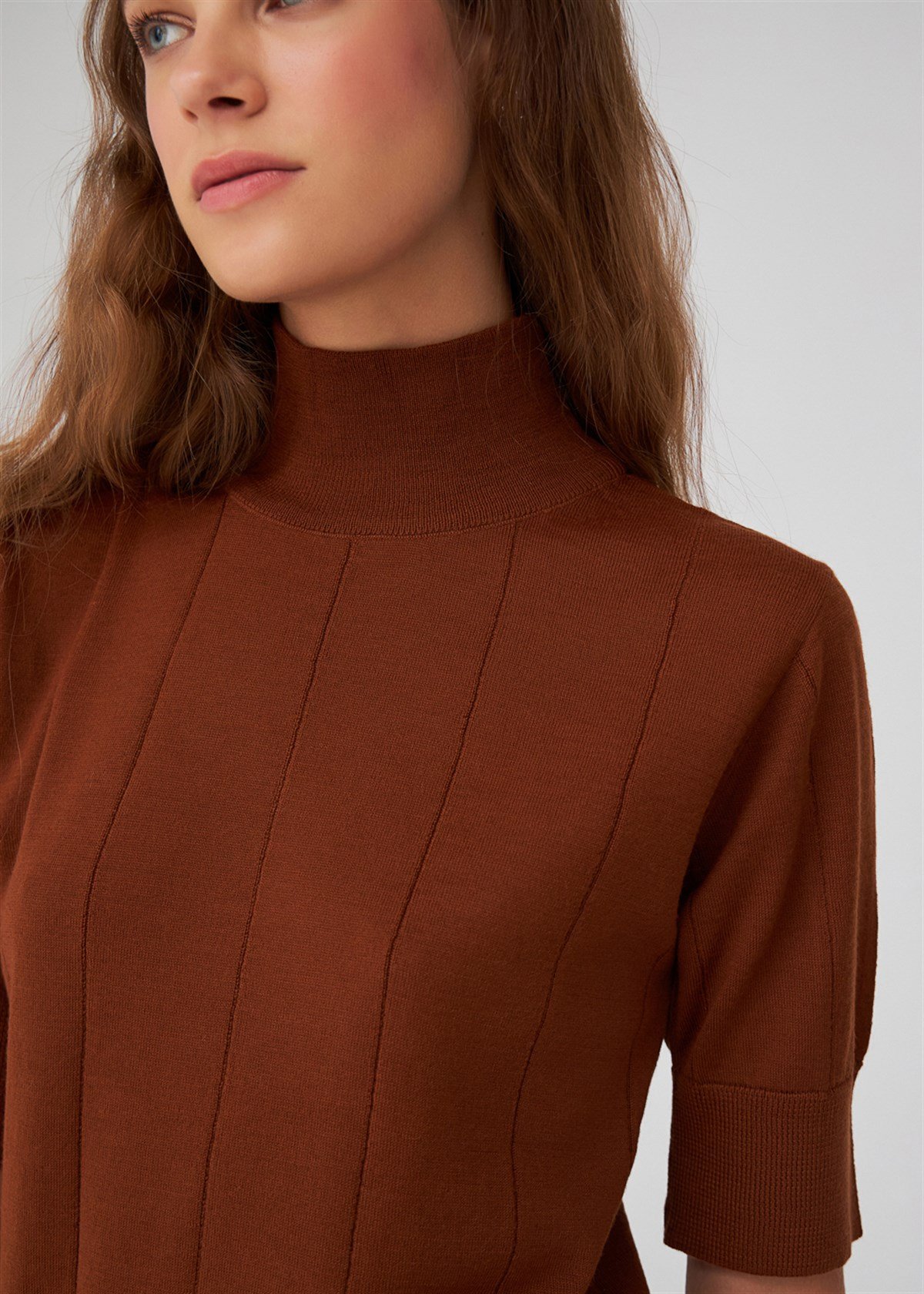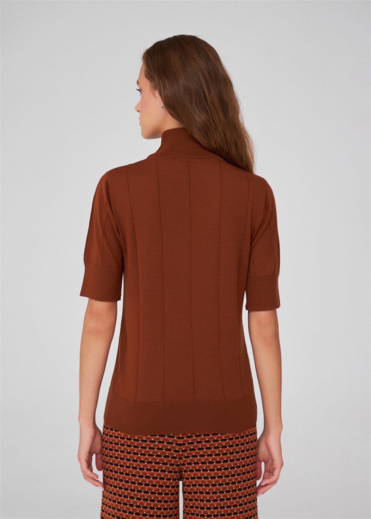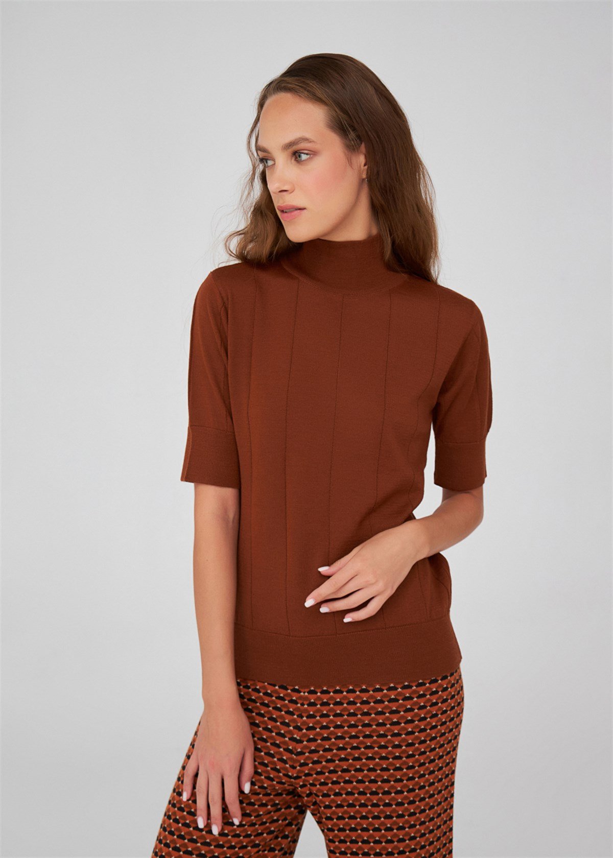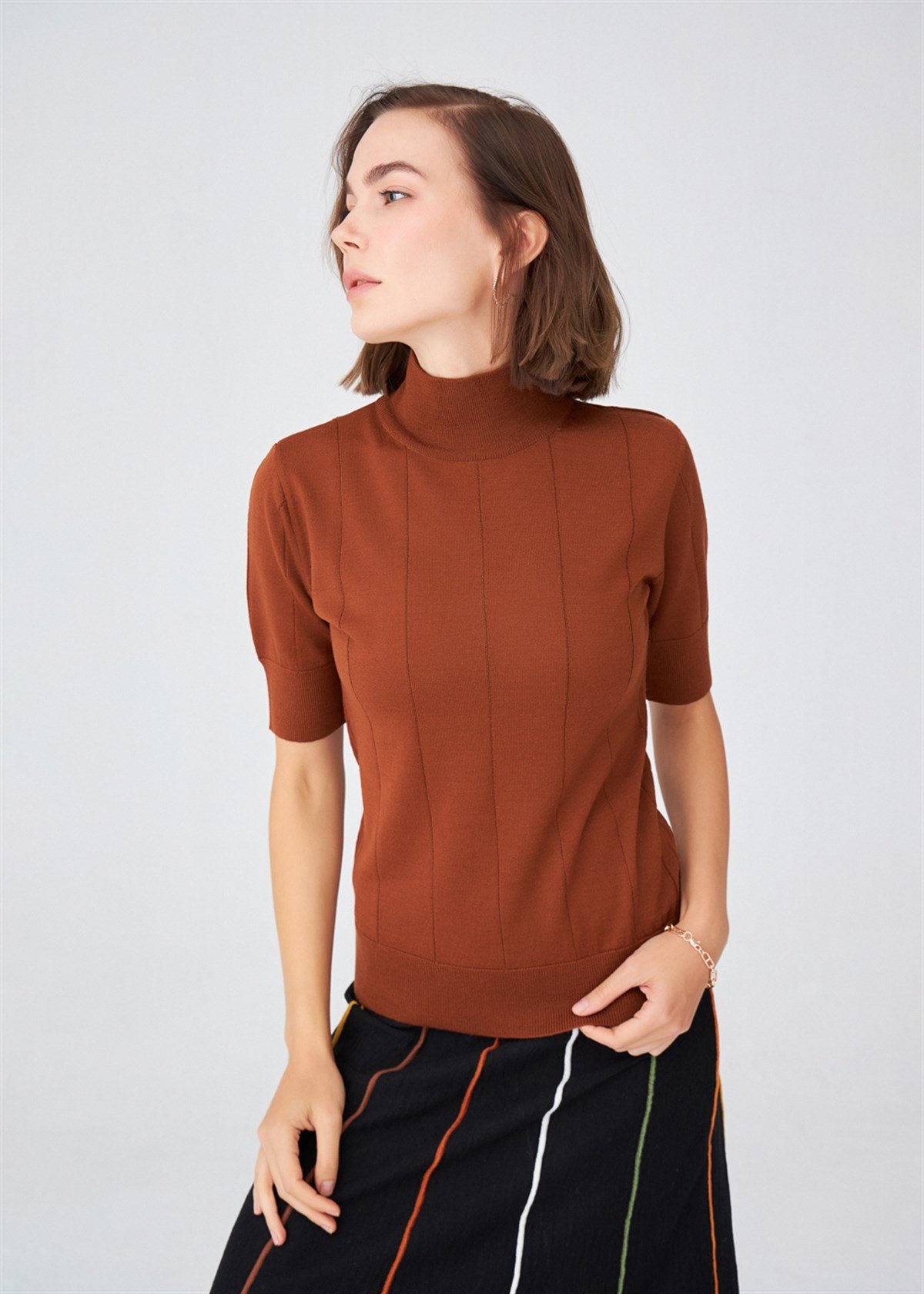 Peraluna Turtleneck Short Sleeve Slim Women's Knitwear Blouse - Brown