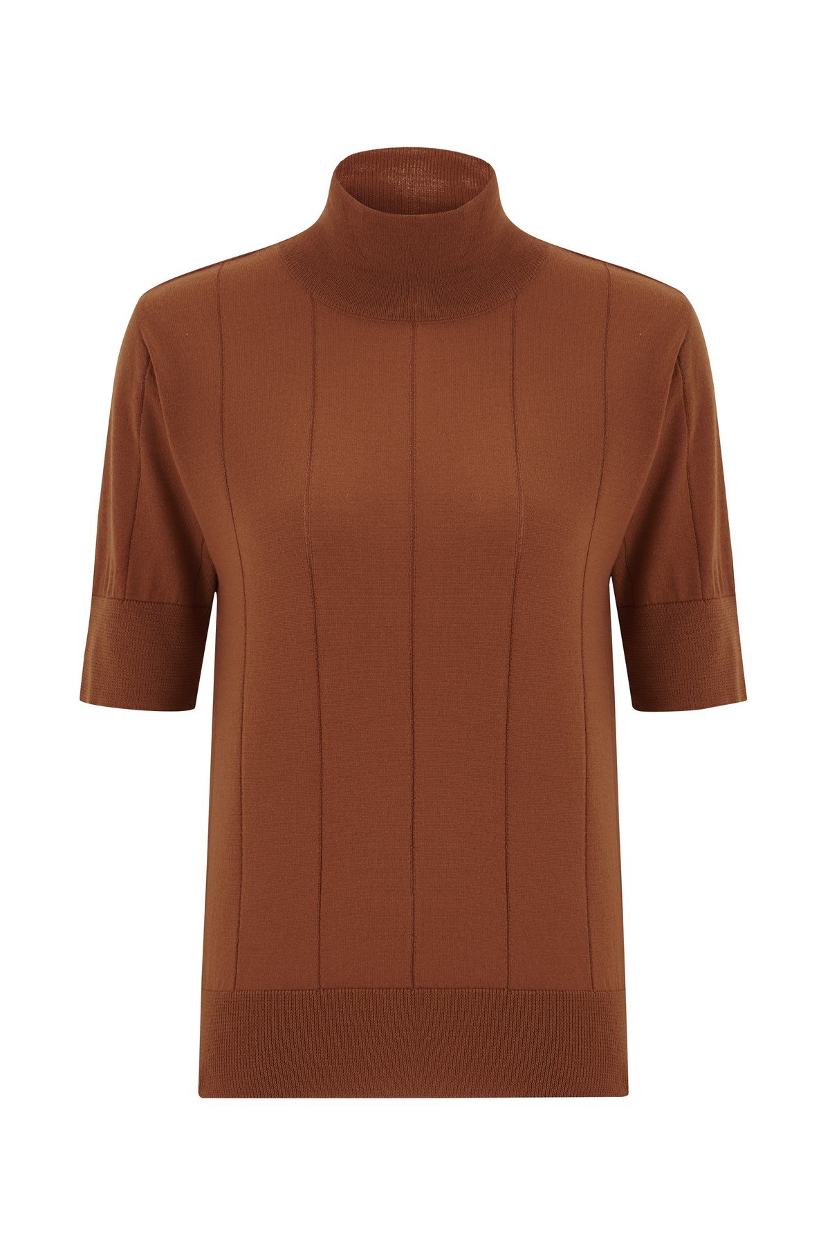 Peraluna Turtleneck Short Sleeve Slim Women's Knitwear Blouse - Brown (12307005)