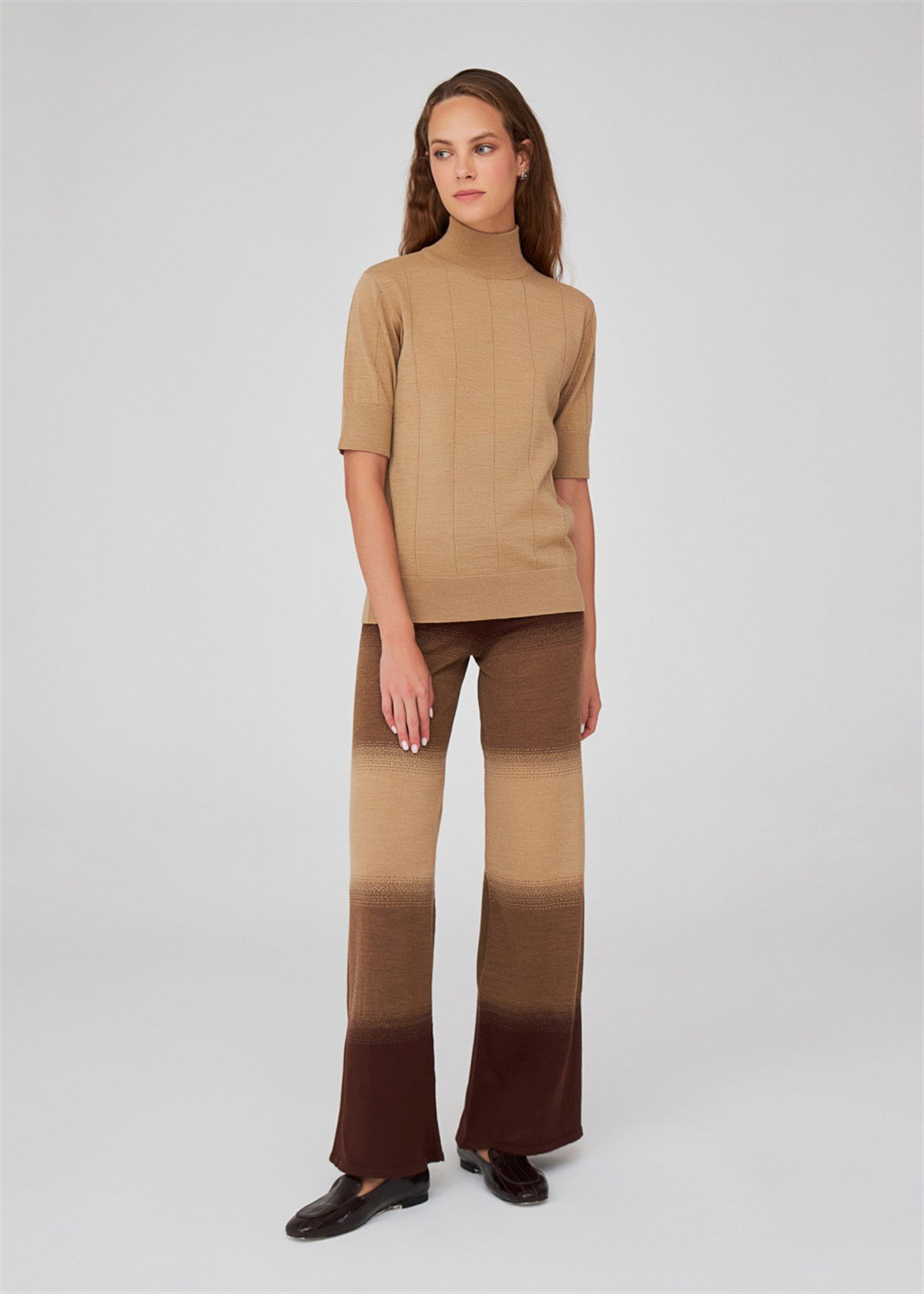 Peraluna Turtleneck Short Sleeve Slim Women's Knitwear Blouse - Camel Melange