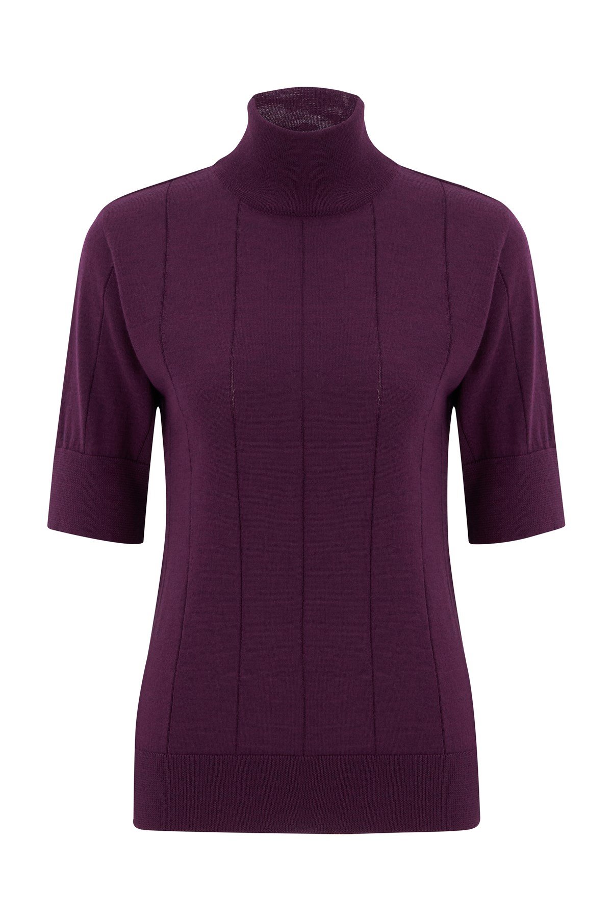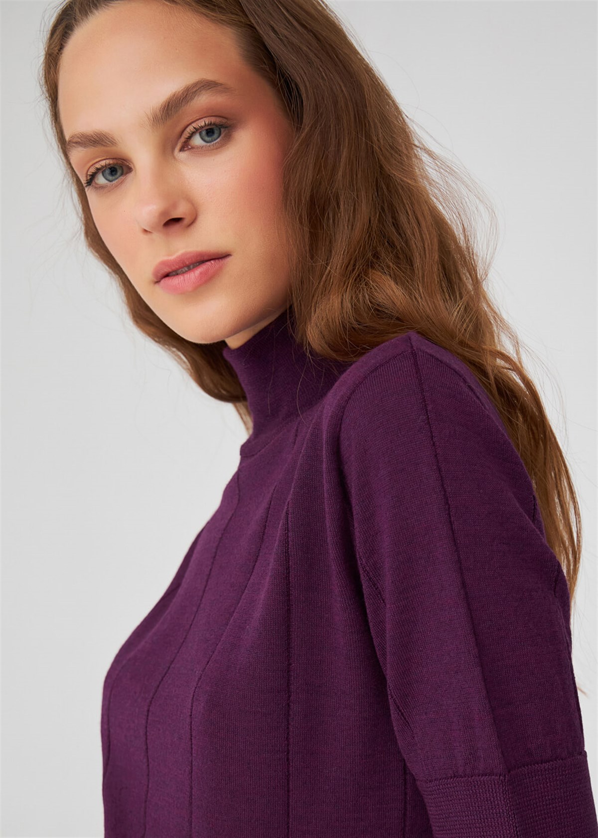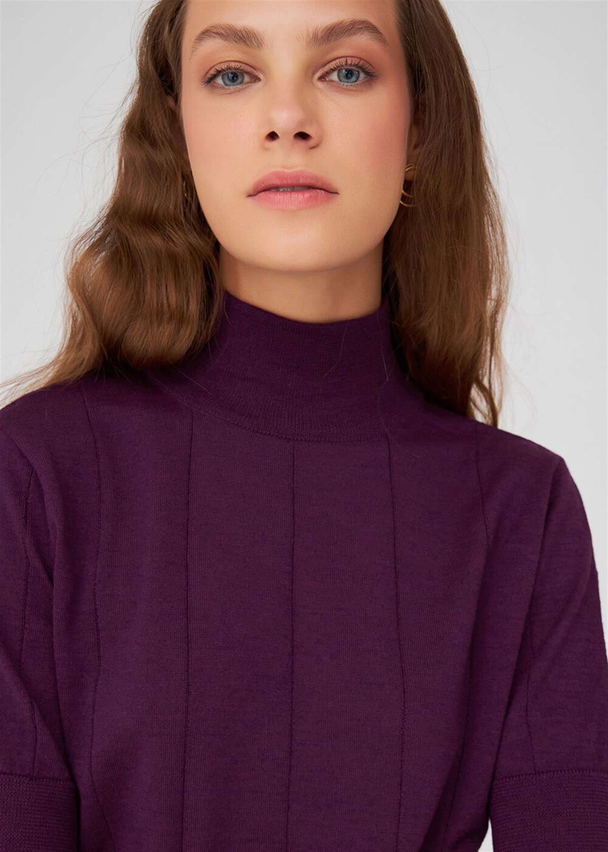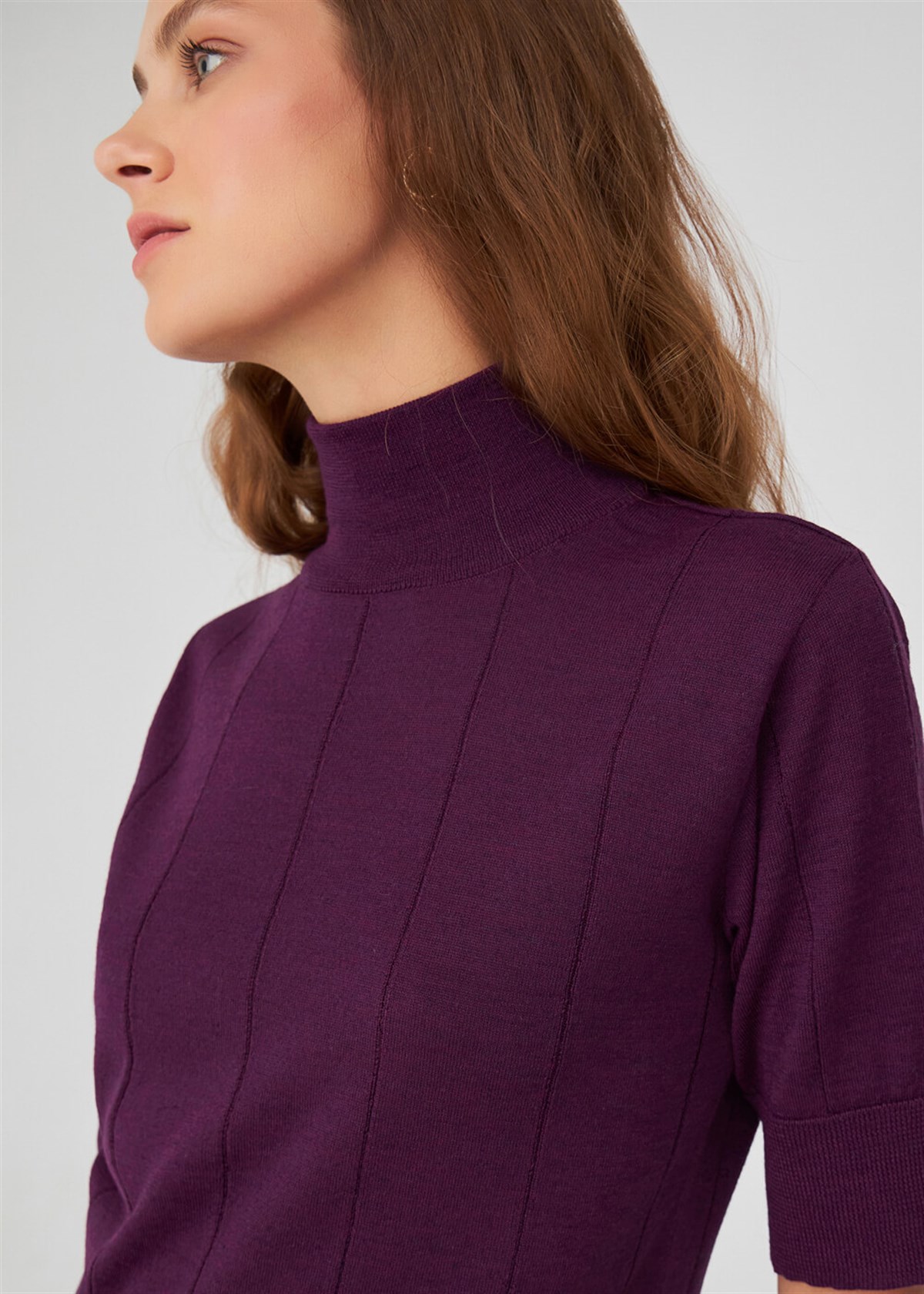 Peraluna Turtleneck Short Sleeve Slim Women's Knitwear Blouse - Purple Melange (12307005)