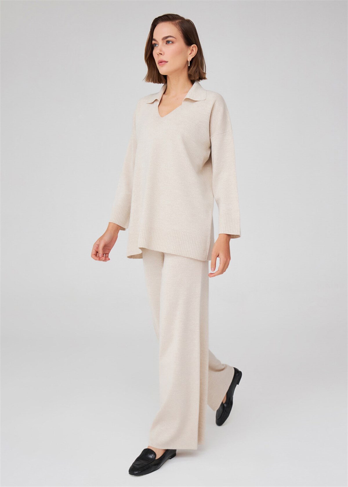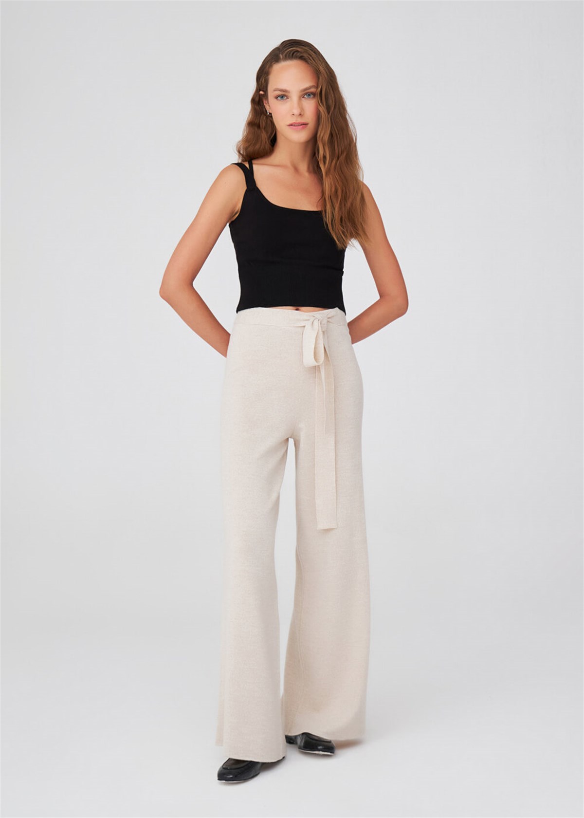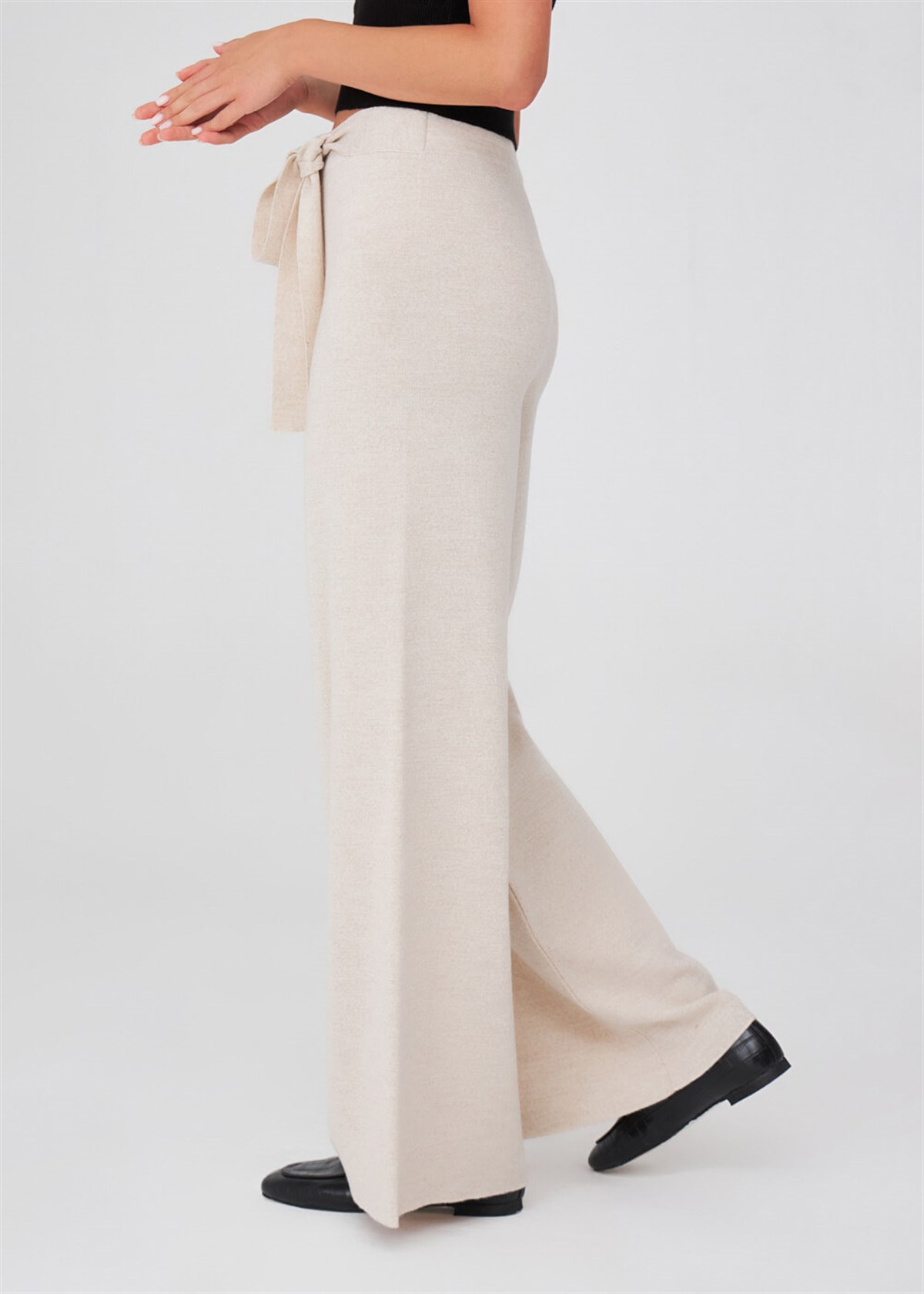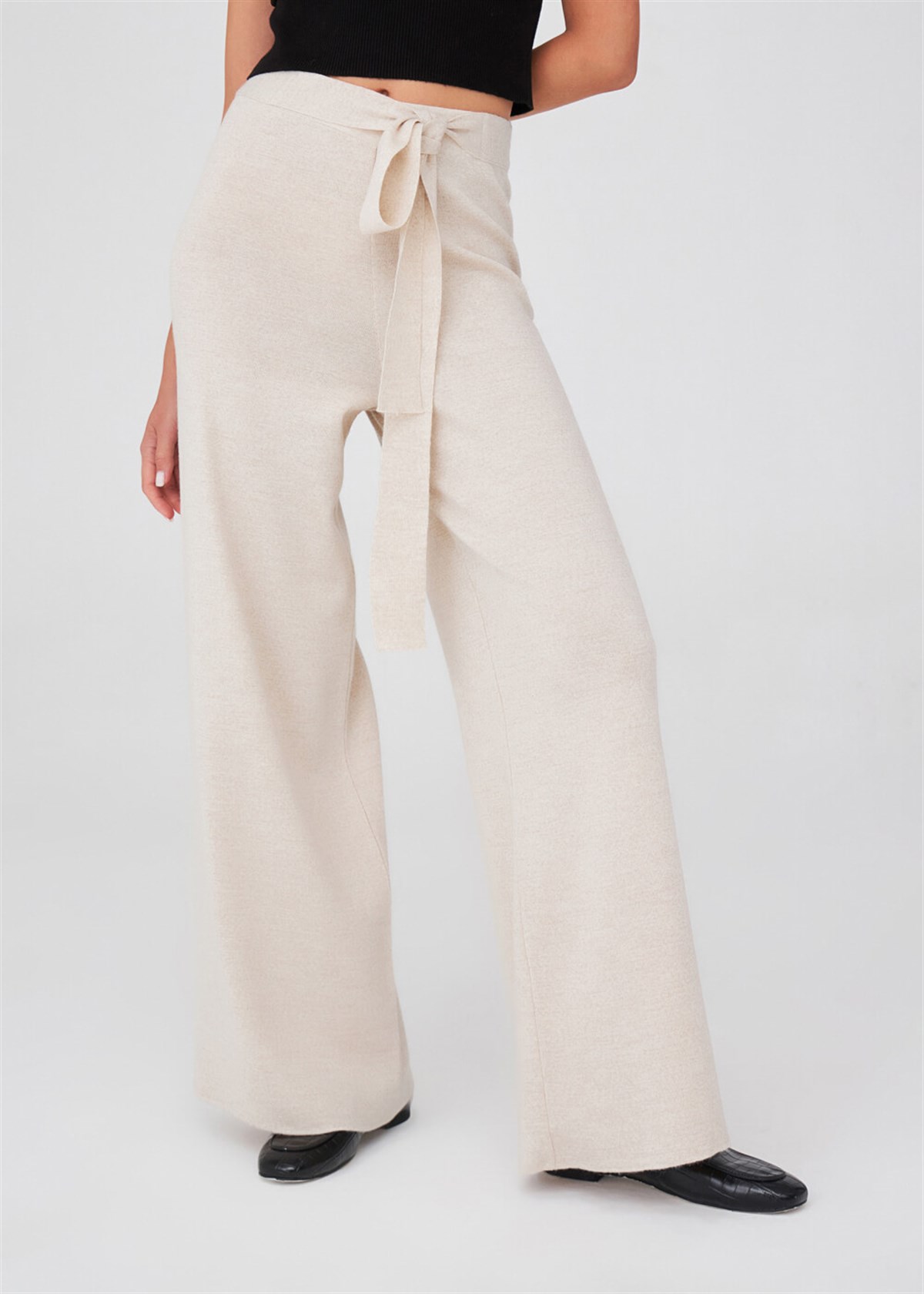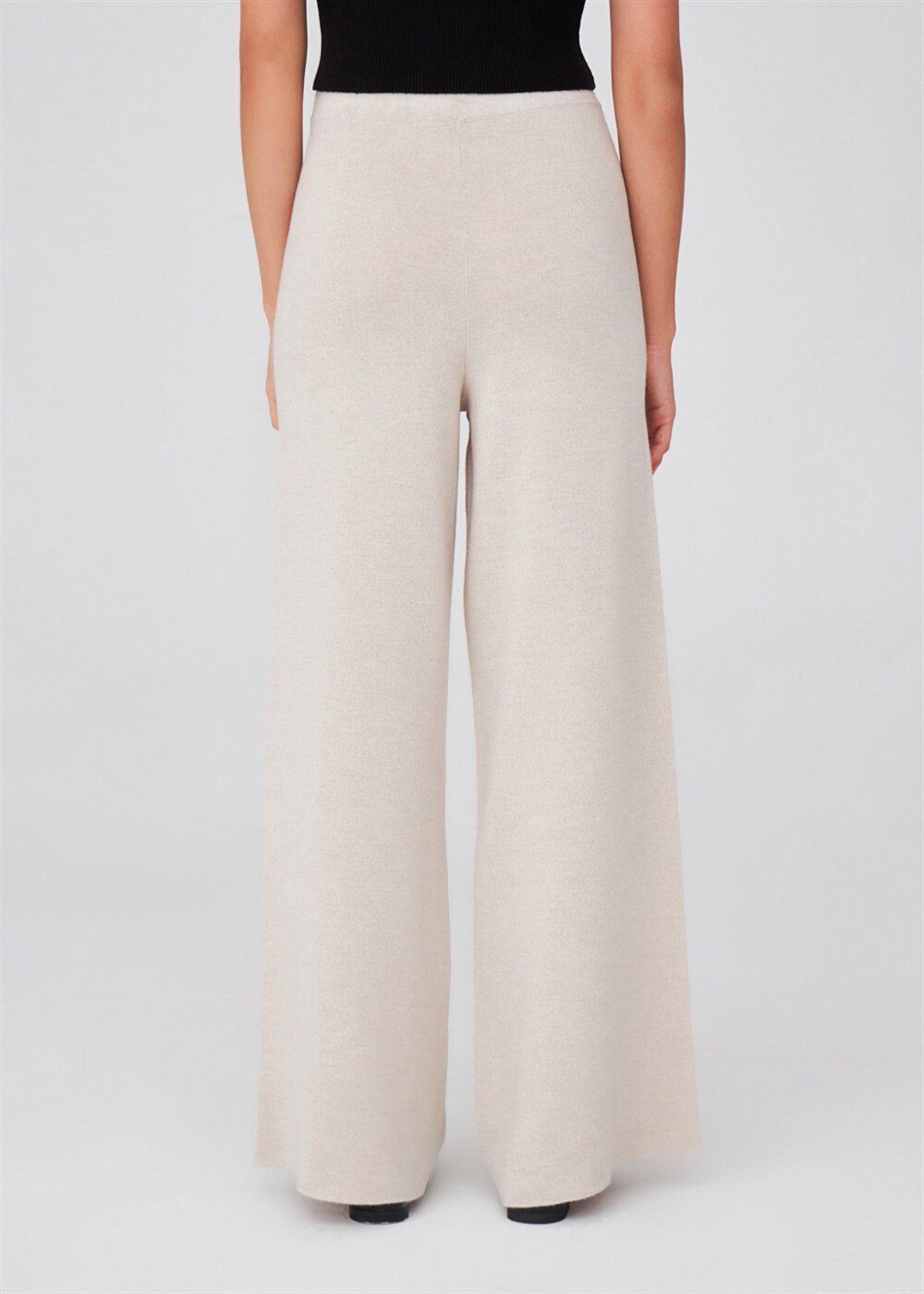 Peraluna Wide Leg High Waist Trousers Women Knitwear Trousers - Ecru Melange