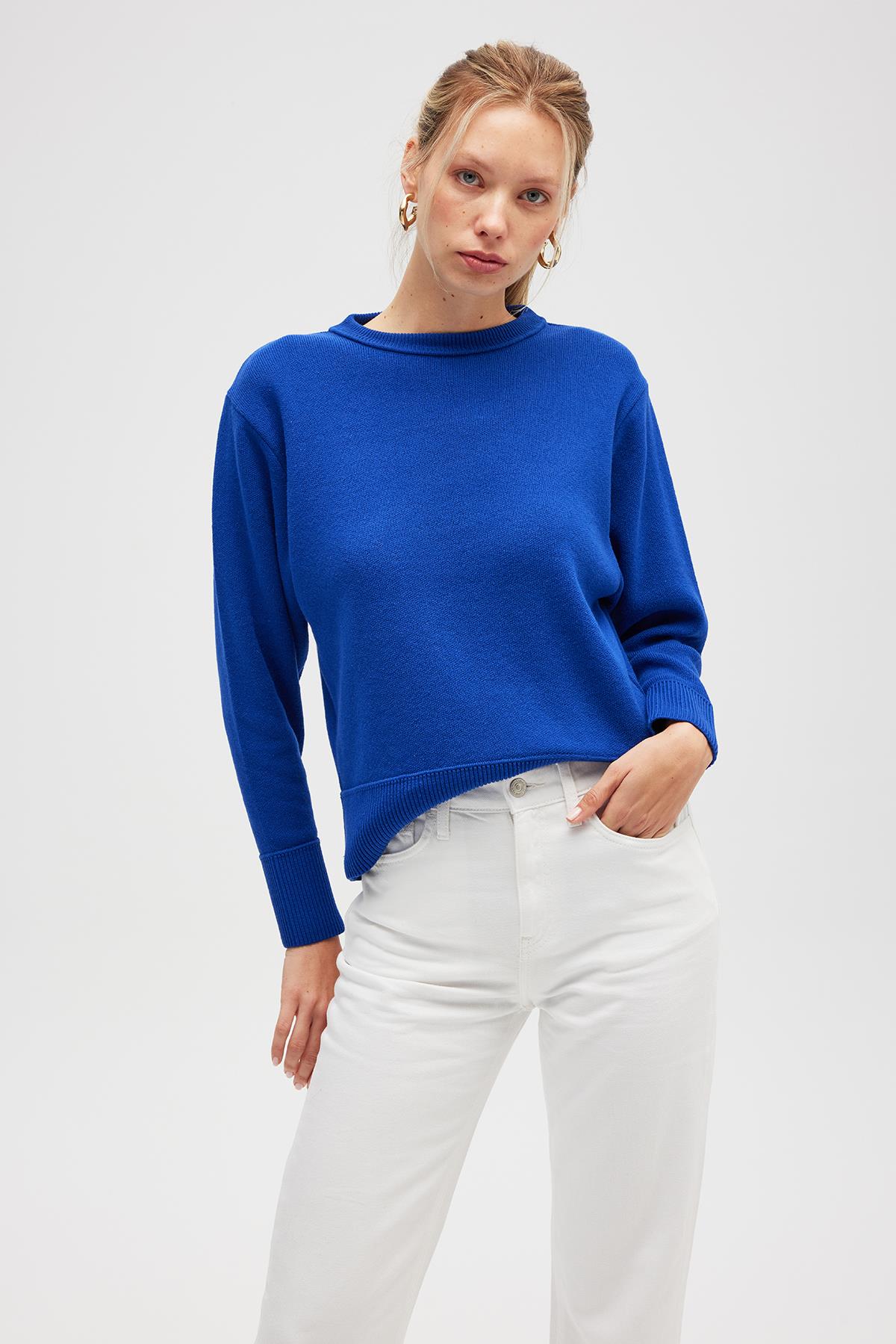 Peraluna Risu, Düz Örgü Kadın Mevsimlik Triko Bisiklet Yaka Kazak - Saks Mavi (13102009)