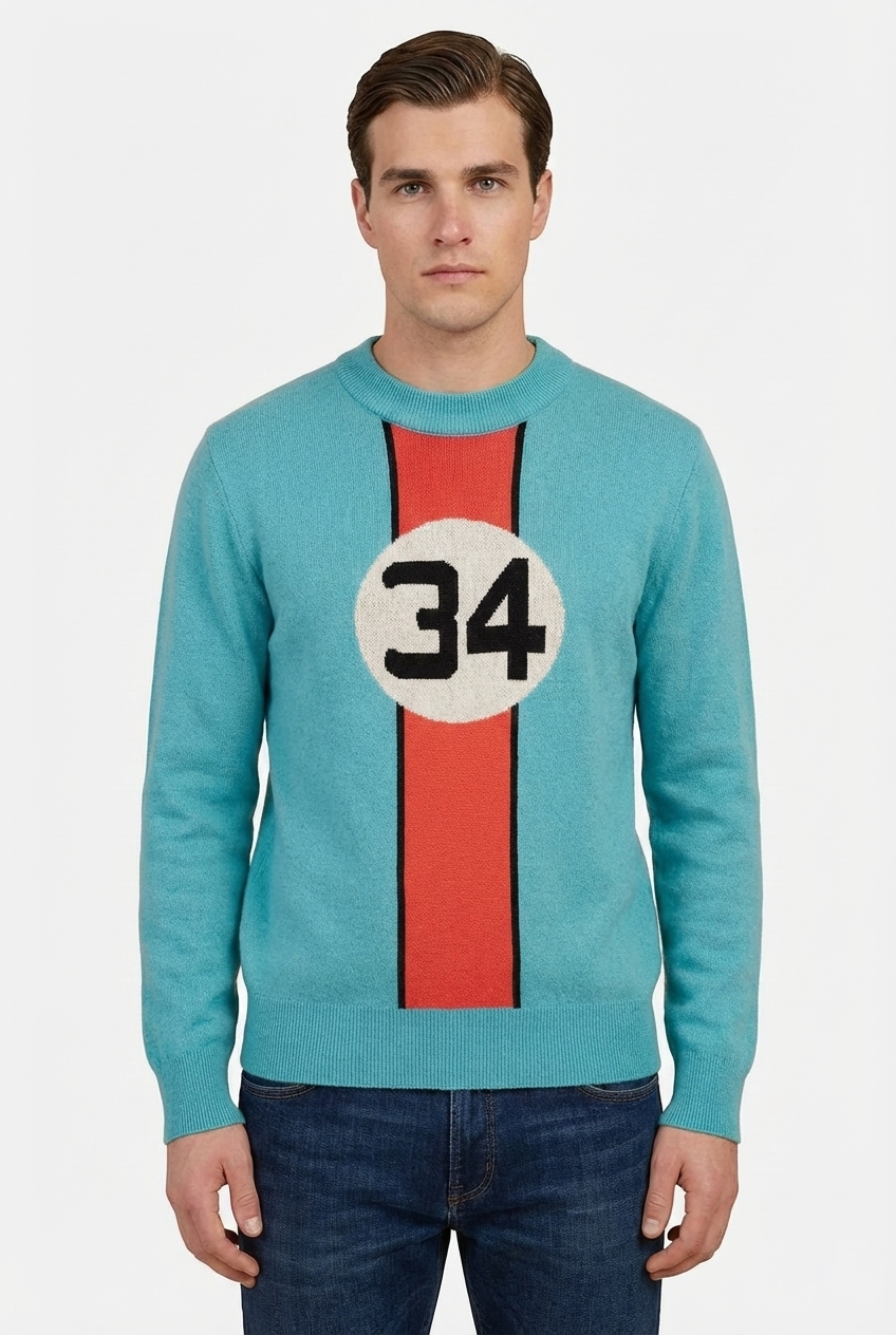 Peraluna SERGIO PULLOVER 34 No Jakarlı Pike Örgülü Mevsimlik Yarışçı Erkek Triko Kazak - Mavi/Turuncu